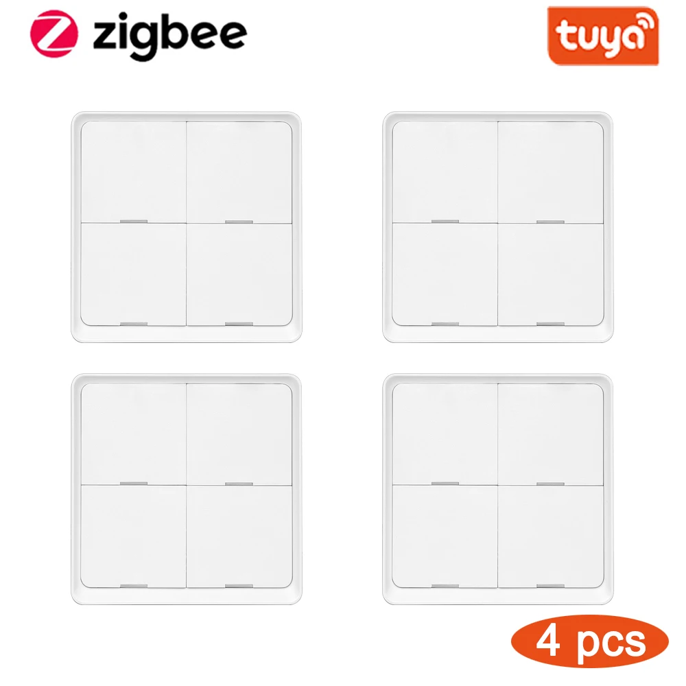 Беспроводной кнопочный переключатель Tuya Smart ZigBee, автоматический пусковой контроллер на 4 клавиши, работает от батареи, для устройств Tuya