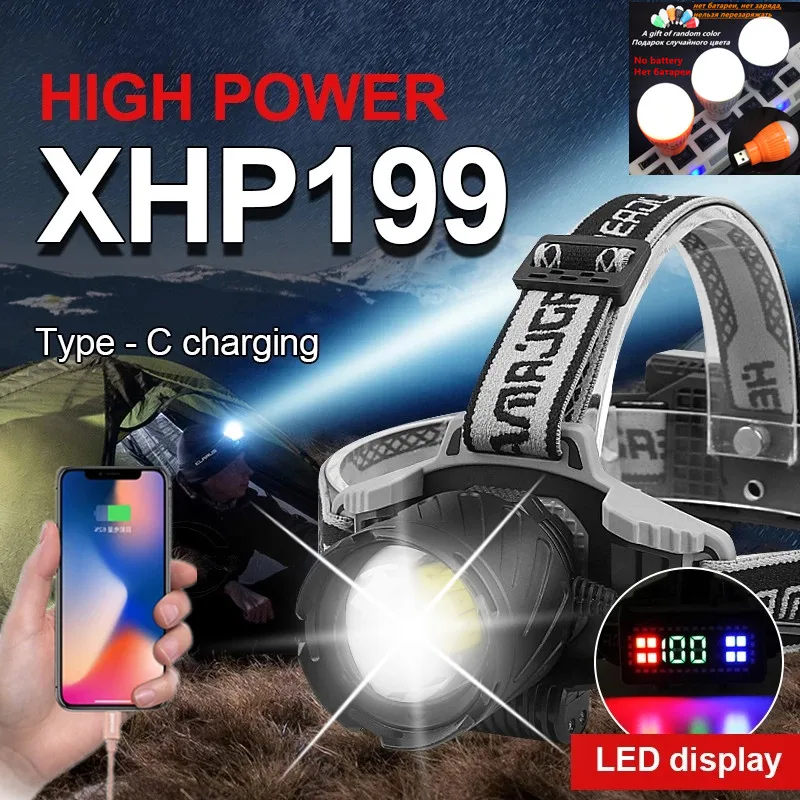 2021 XHP199 налобный фонарь для рыбалки супер яркий Мощный налобный фонарь 18650 Перезаряжаемый USB светодиодный налобный фонарь XHP160 XHP90 налобный фонарь