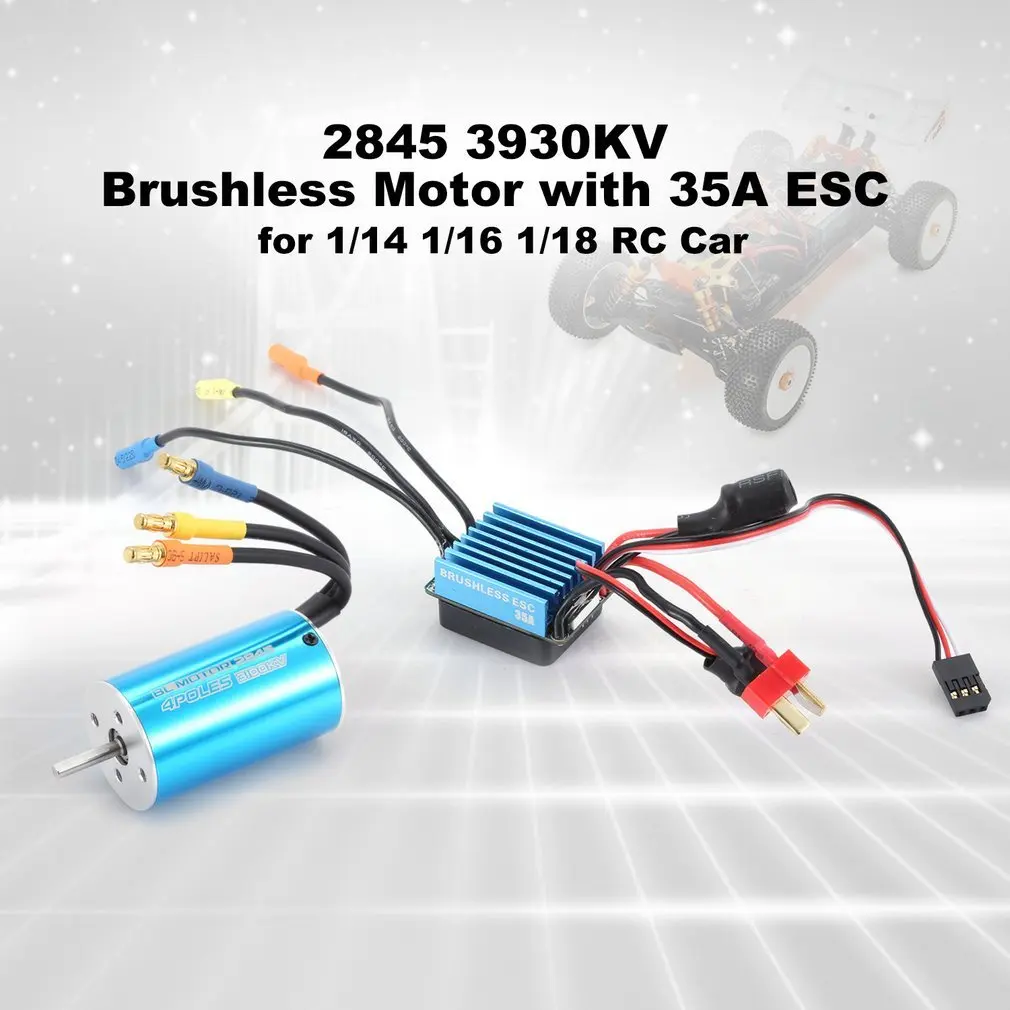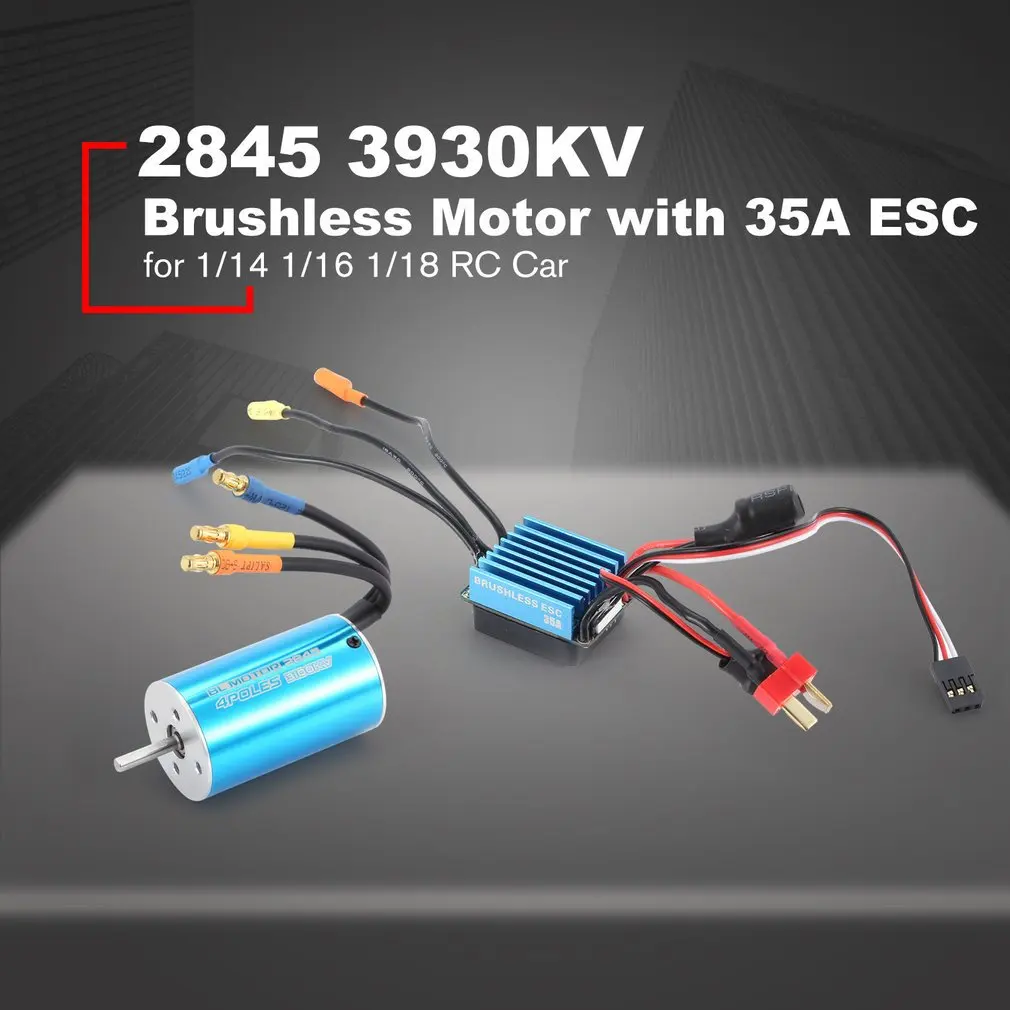 Набор имеет бесщеточный двигатель 2845 3930KV, ESC 35A, который подходит для автомобилей 1/14, 1/16, 1/18 RC.