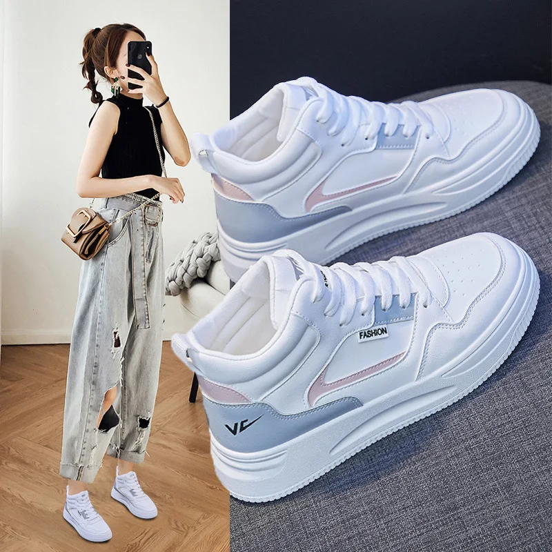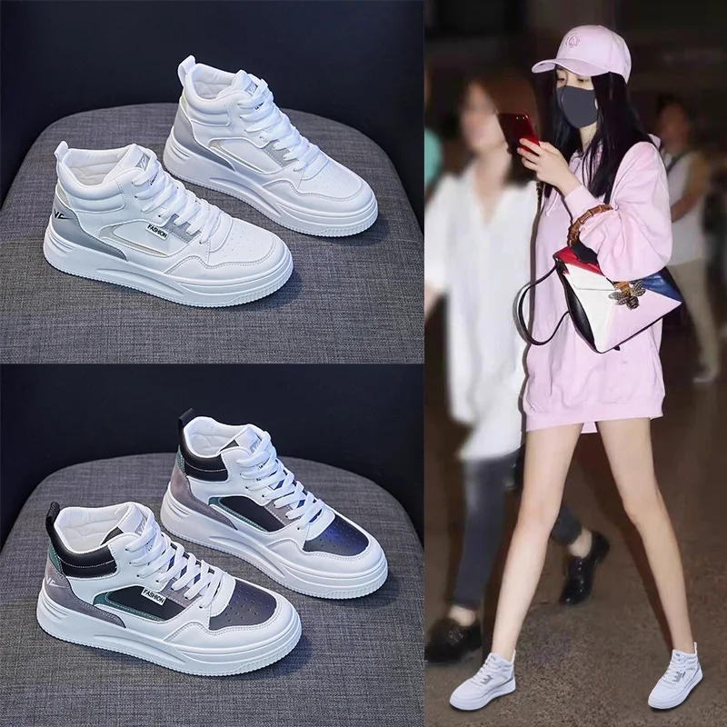 Кроссовки женские высокие, кожаные, дышащие, на платформе, для студентов, весенний сезон