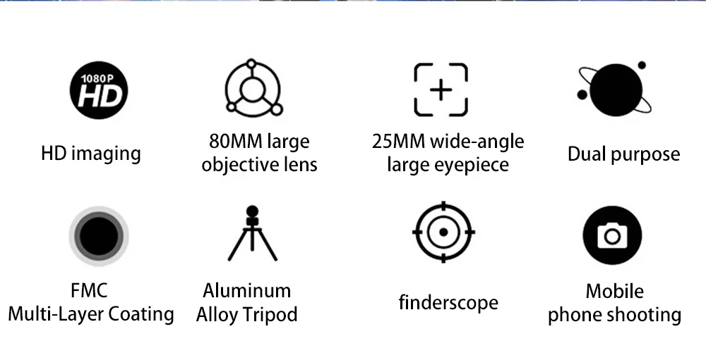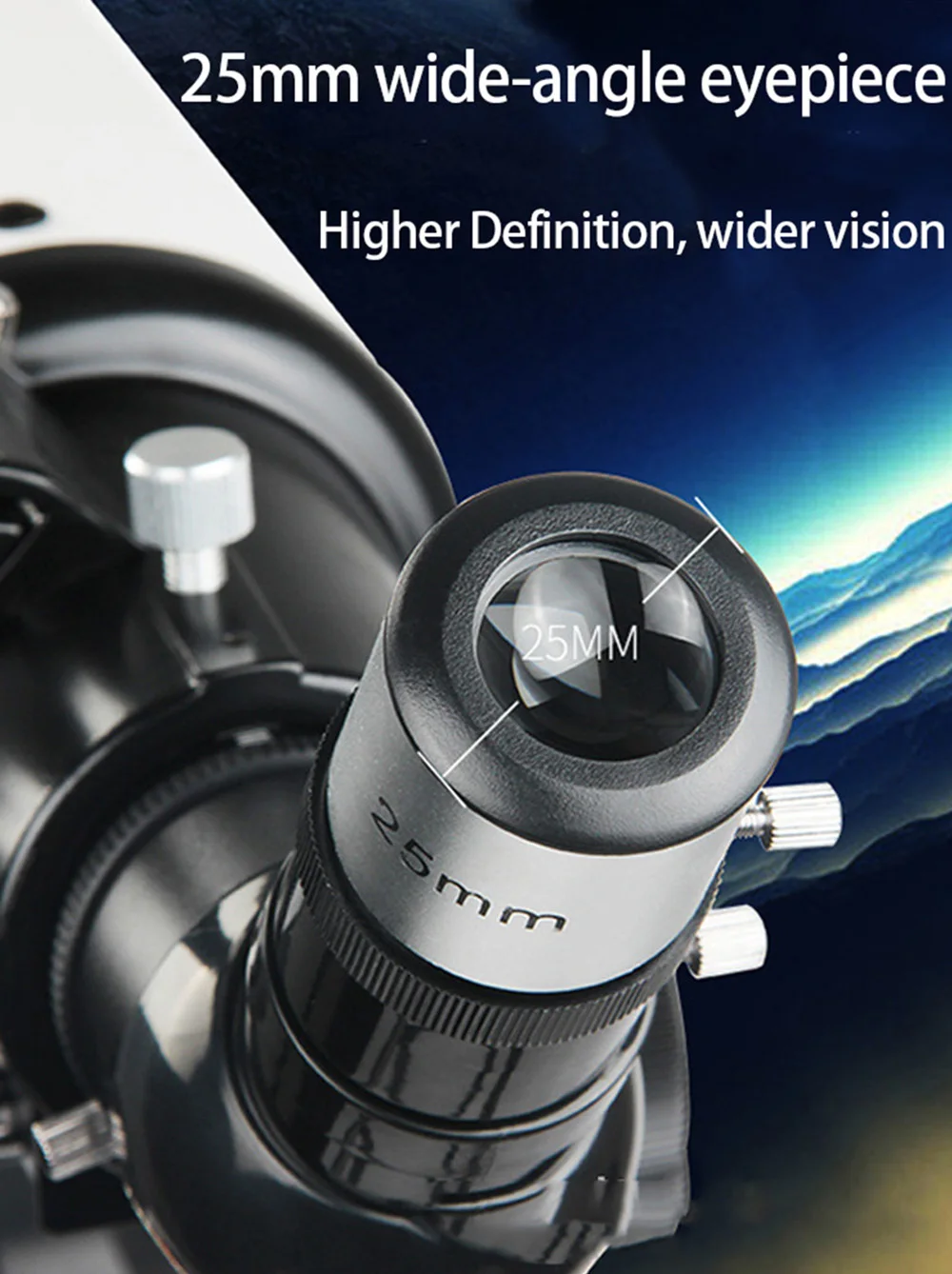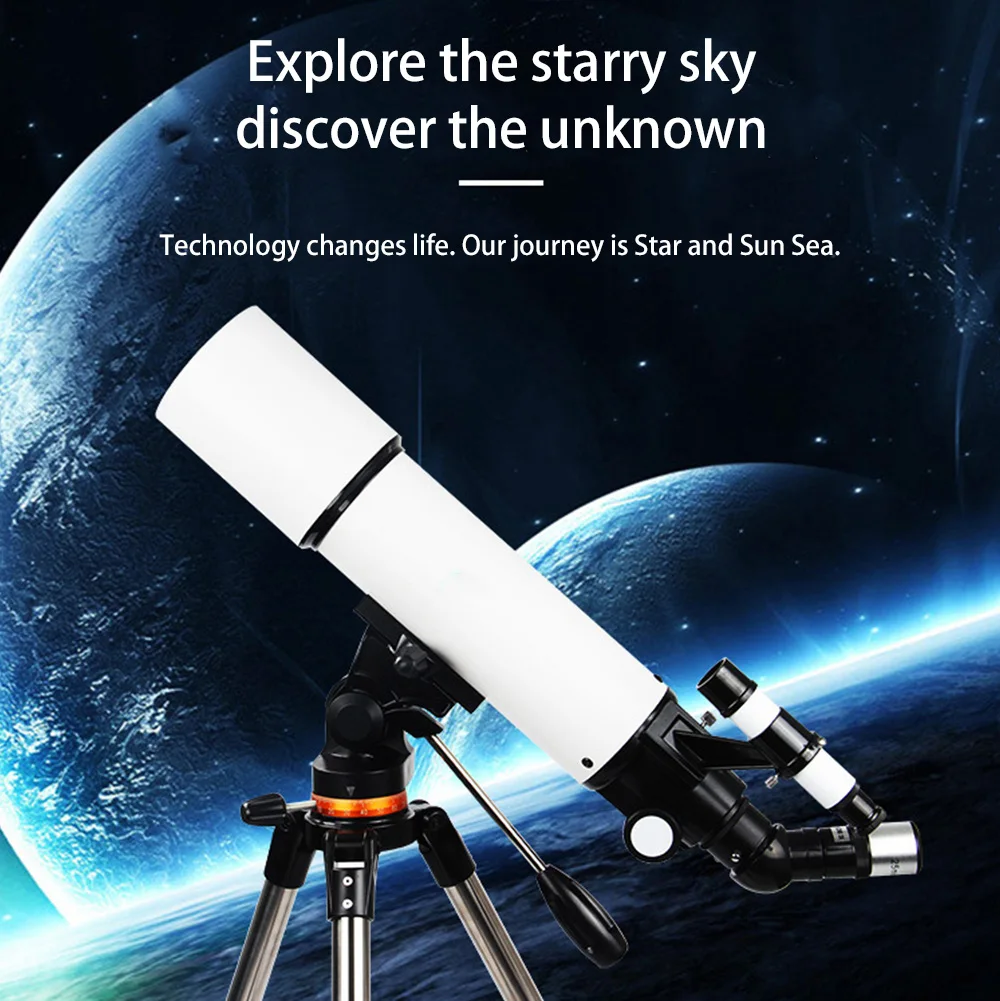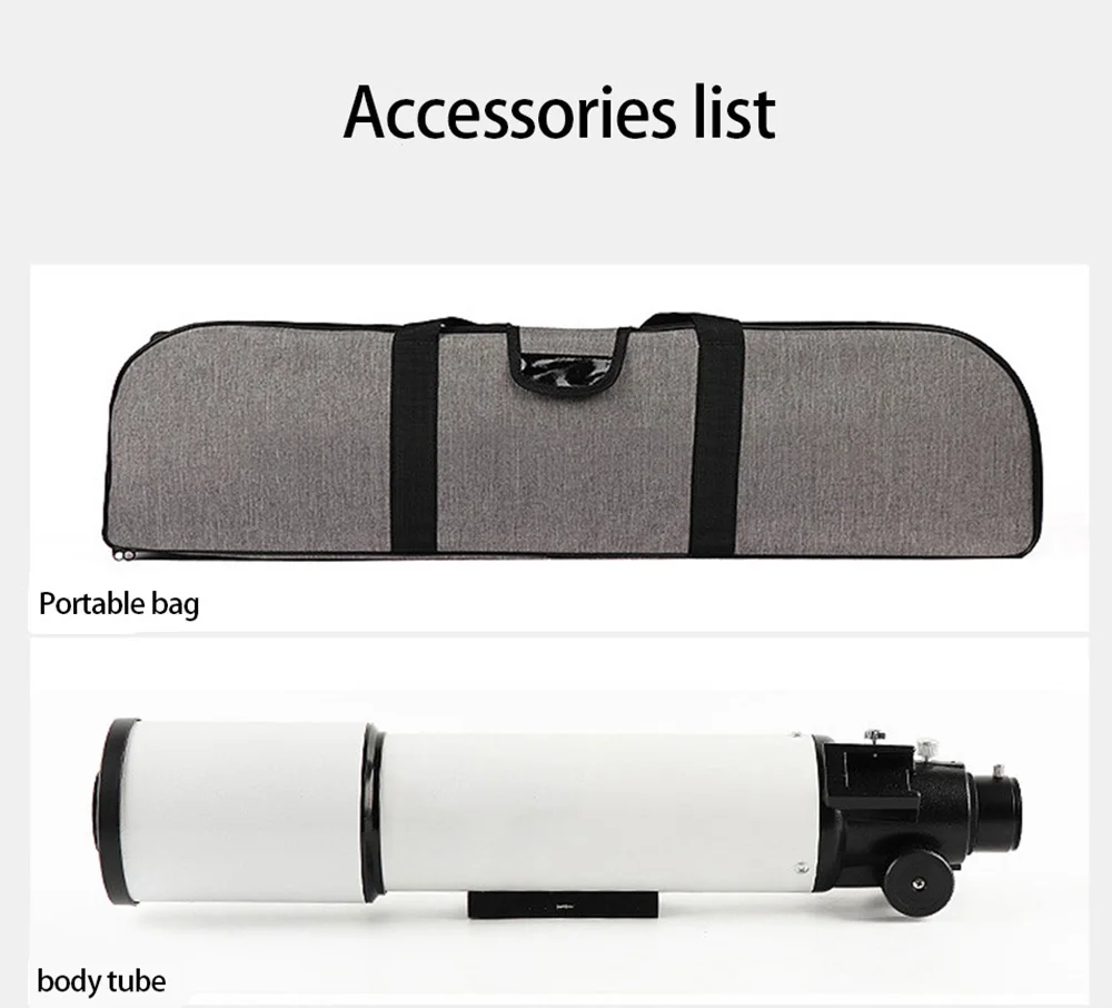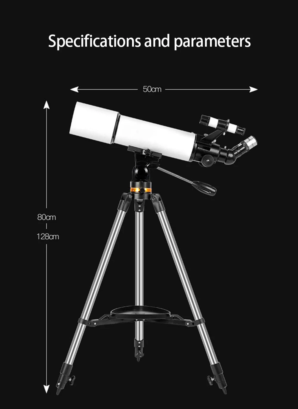 Профессиональный астрономический телескопУвеличение: 150xДиаметр объектива: 80 ммОкуляры: 20 мм, 10 ммМатериал: высококачественный алюминиевый сплав