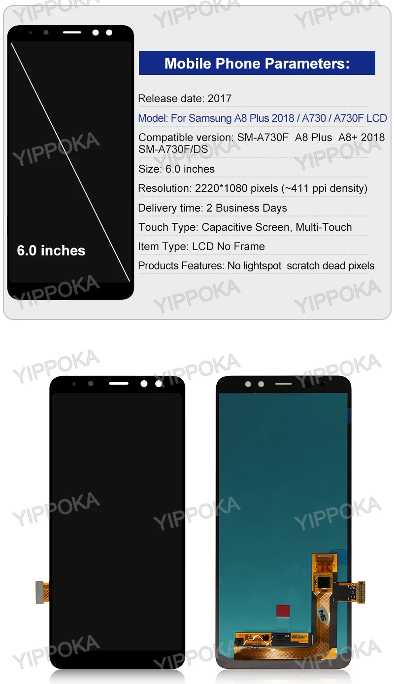 1. Этот товар совместим с:Для Samsung Galaxy A8 Plus 2018 A730 A8 + 2018 A730F LCD