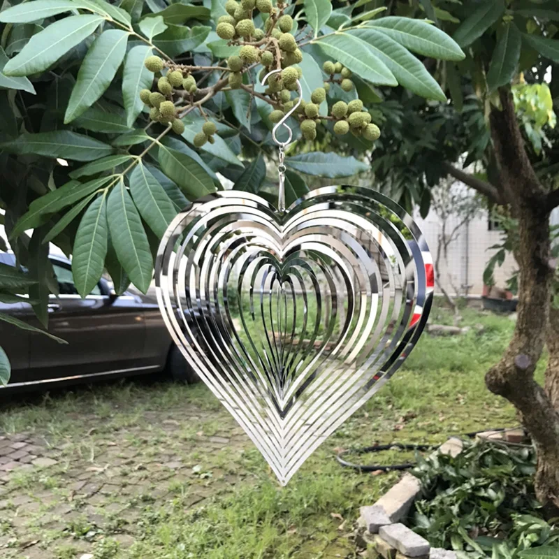 3D вращающийся колокольчик-колокольчик, бьющийся сверкающий ветряной Спиннер в форме сердца, квадратная капля, украшение для дома и сада, уличный подвесной Декор