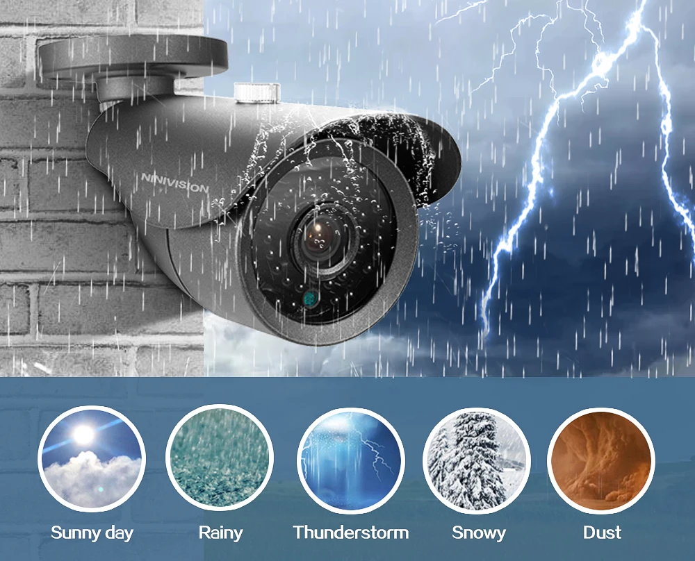 Используйте их в качестве наружных камер или крытых камер, так как они построены жестко, выдерживает любую погоду: дождь, снег, пыль и жаркие дни. С защитой от атмосферных воздействий IP66 и кабелями, просвечивающимися через подставку для защиты, гарантируем, что вы сможете ответить на их производительность, день в день. Наша камера имеет сверхпрочный металлический корпус, профессиональный IP66, устойчивый к атмосферным воздействиям, обеспечивая стабильную производительность как внутри, так и снаружи.