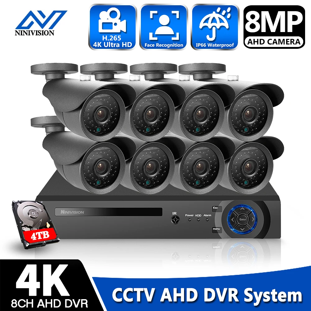 NINIVISION 8-канальный 4K Распознавание лиц охранного видеонаблюдения Системы видеорегистратор на открытом воздухе для любых погодных условий CCTV Камера Системы H.265 + комплект видеонаблюдения