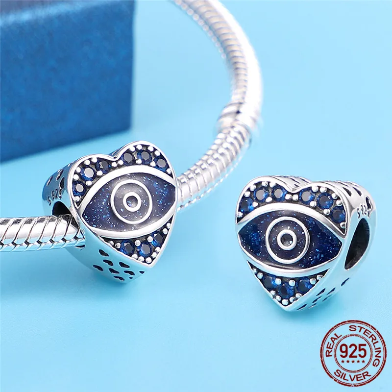 Оригинальные подвески для браслета, серебро 925 пробы, голубые глаза
