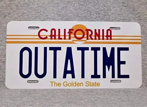 Металлический полноразмерный номерной знак Outatime Назад в будущее Калифорния Золотой Государственный фильм реквизит Реплика автобирка Украшение стен человек