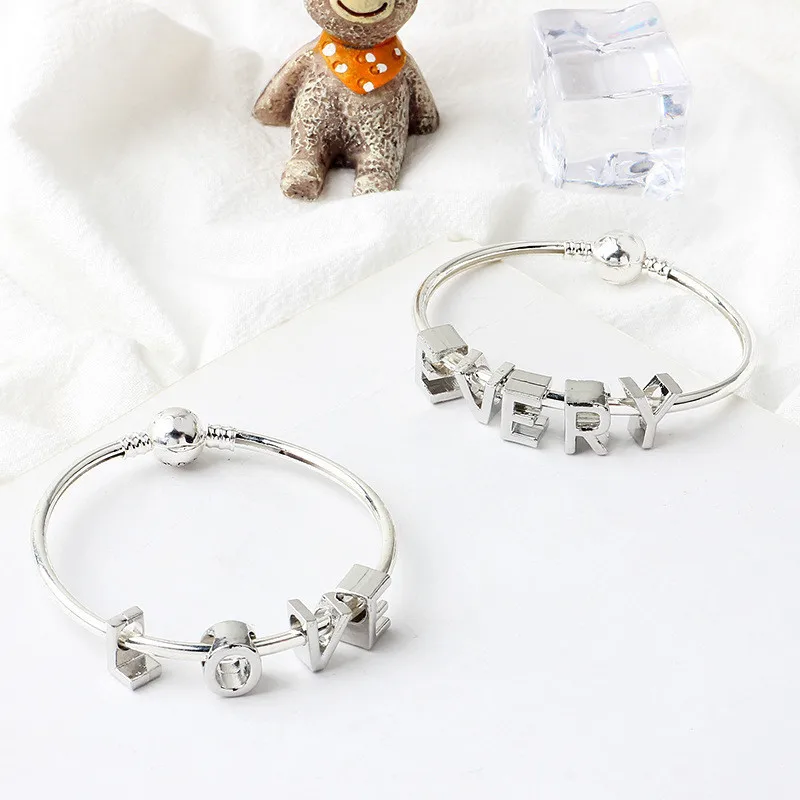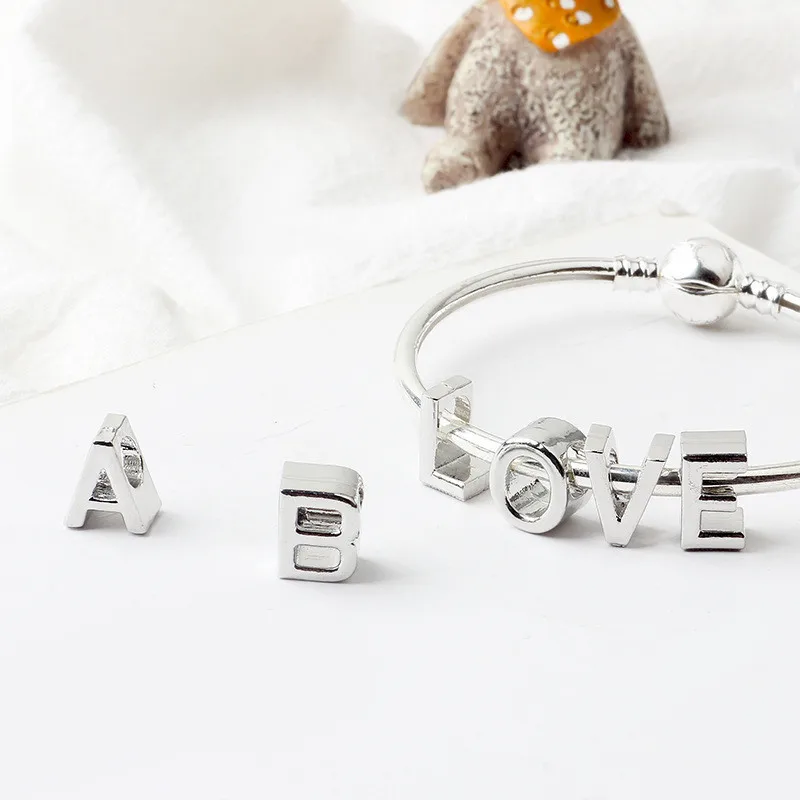 1 шт. Классическая Подвеска-бусина из сплава с зеркальными буквами, подходящая для оригинального браслета Pandora, Женские Ювелирные изделия, подарки для изготовления украшений