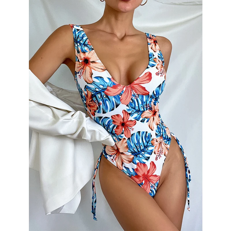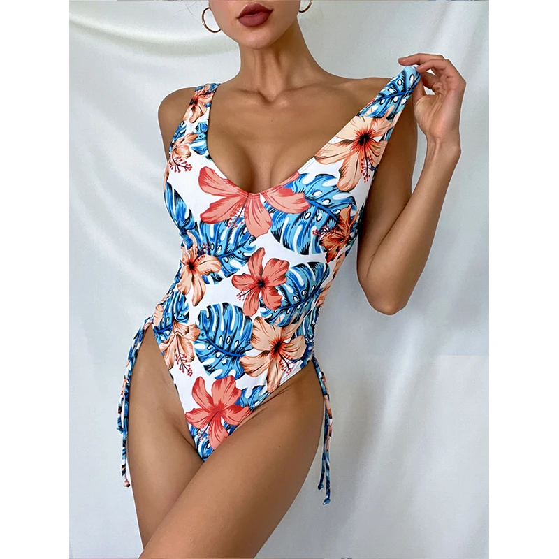Купальник со стрингами, женский слитный купальник с цветочным принтом, спортивный купальный костюм, монокини, пляжная одежда