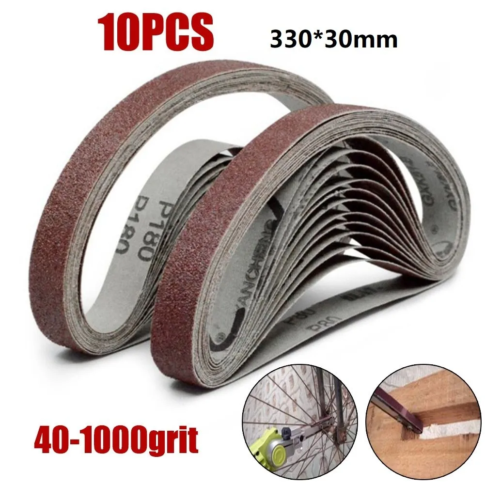 Абразивная шлифовальная лента, 10 шт.компл., 30x330 мм, шлифовальная лента для дерева, мягкого металла, полировки 100-240 Grits, шлифовальные аксессуары