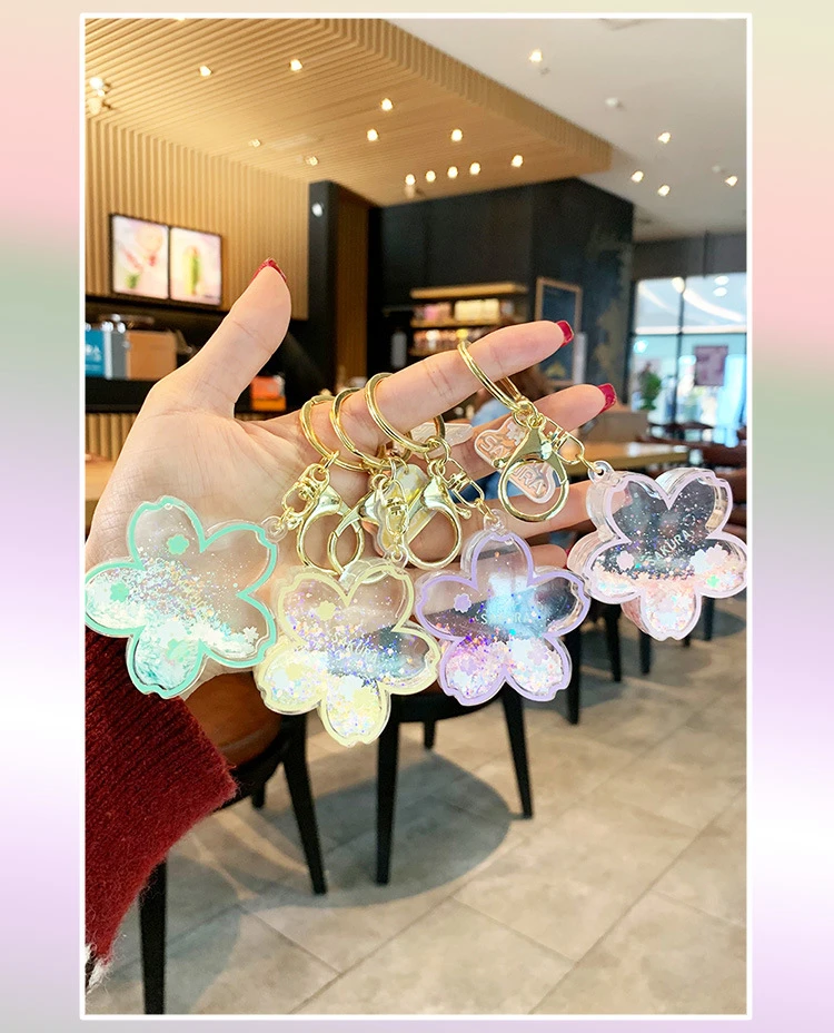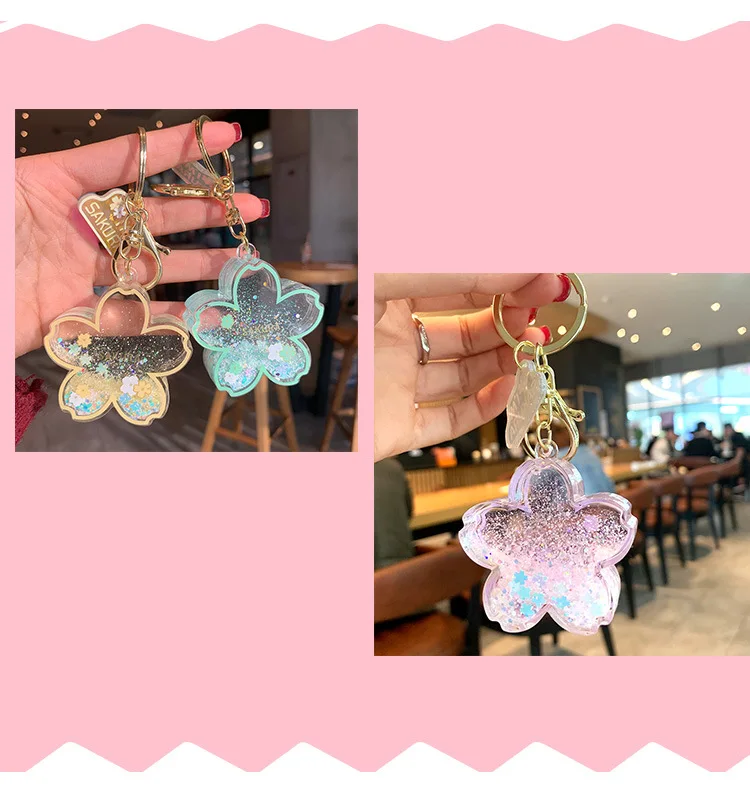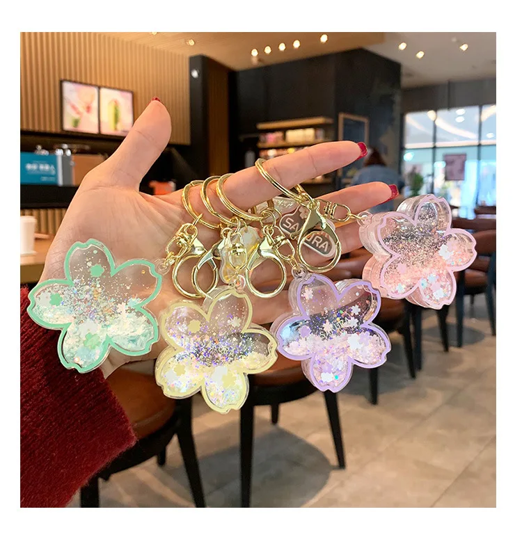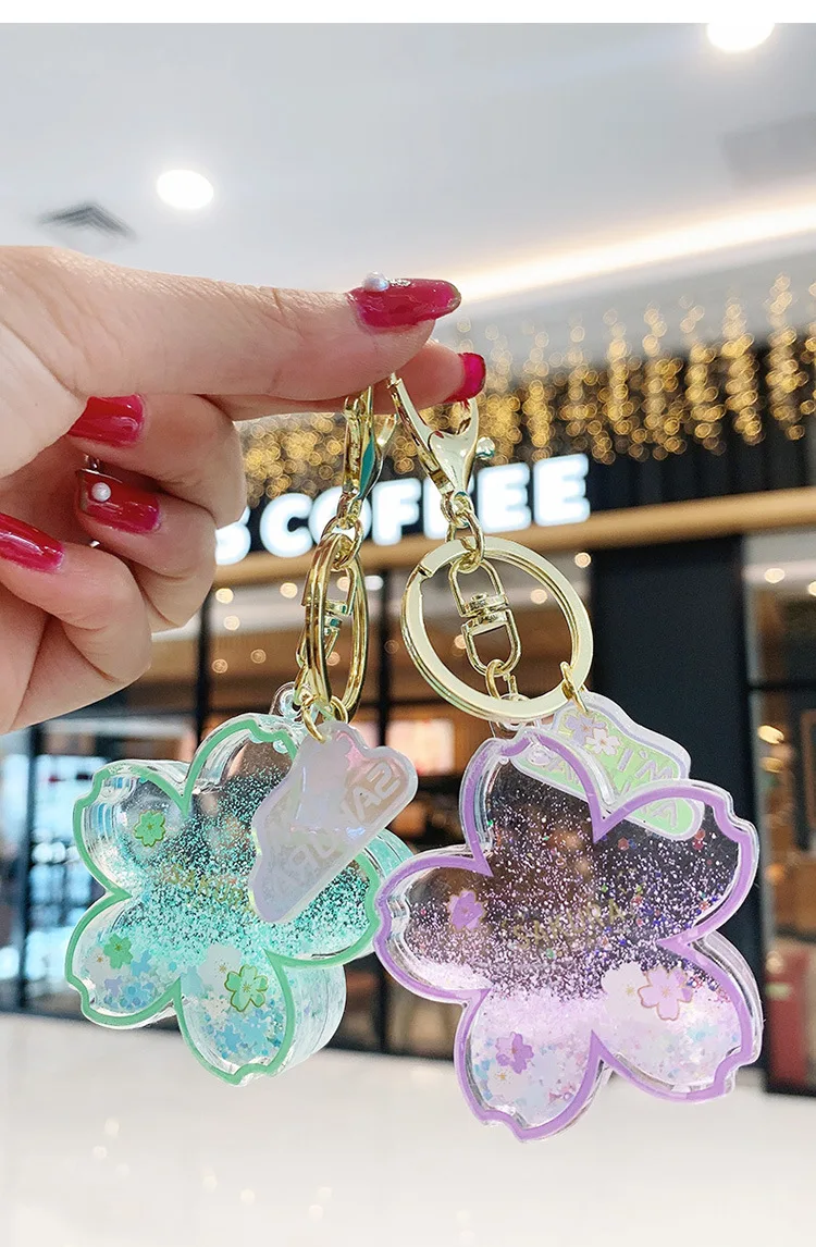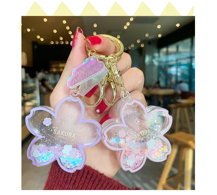 Модный популярный автомобильный брелок с цветком вишни, Kawaii, в стиле ins, подвеска на сумку, Дрифтинг, плавающий поток, брелок для ключей для женщин, пары