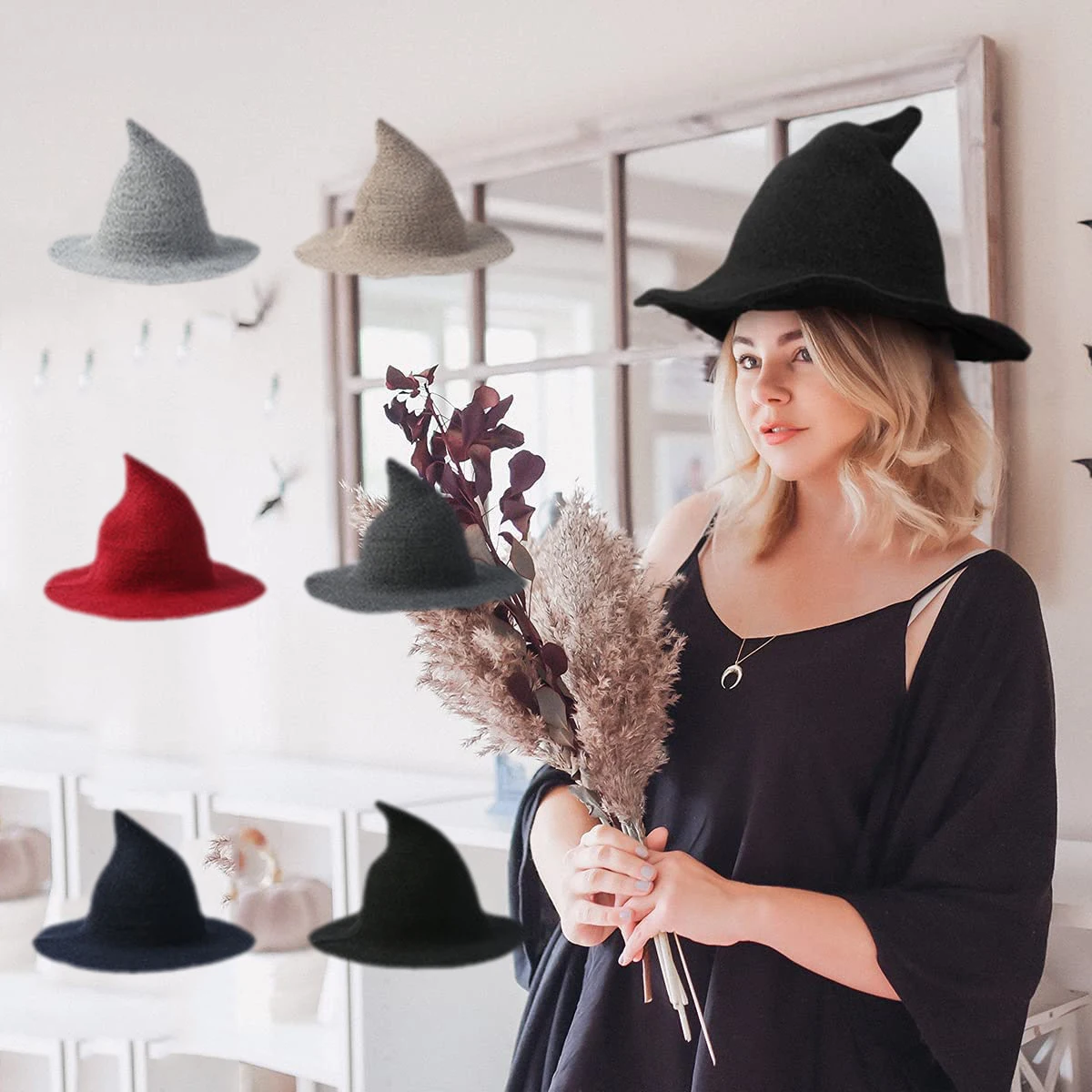 Женские шерстяные шапки ведьмы для Хэллоуина, вечерние маскарадные аксессуары к костюму для Косплей и на каждый день