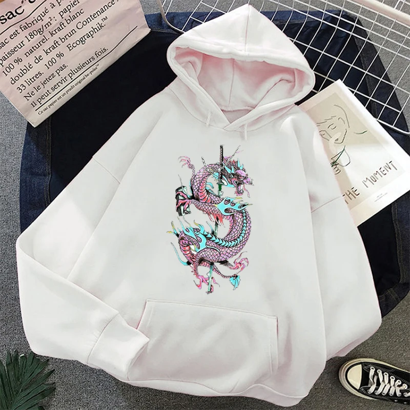 Женская толстовка с капюшоном и принтом дракона, в стиле Харадзюку