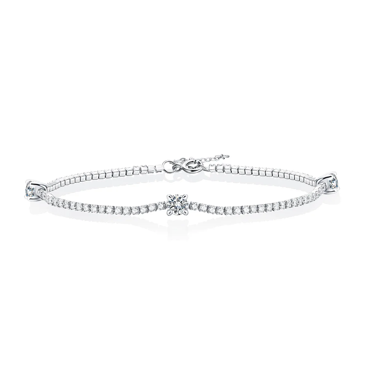 Женский браслет из серебра 925 пробы, с муассанитом круглой формы