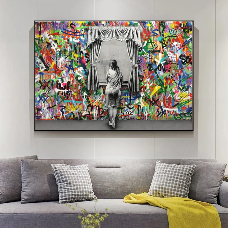 Граффити искусство стены картины для гостиной Бэнкси сцены девушка ...