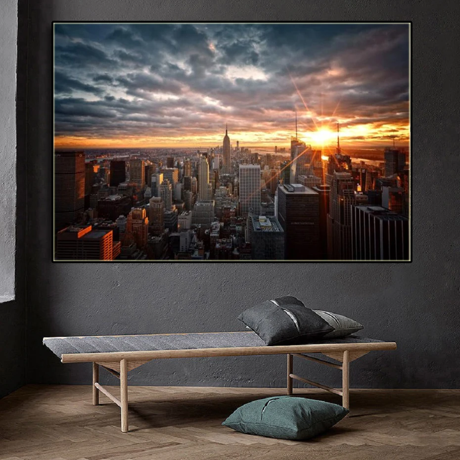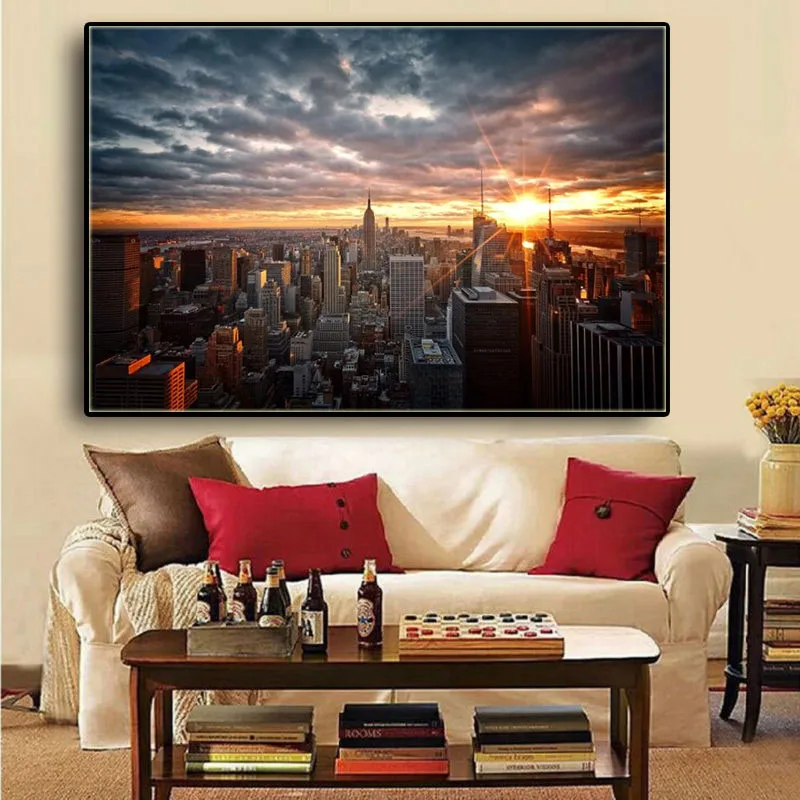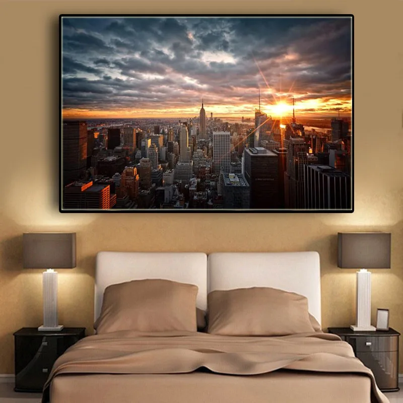 Картины на холсте с изображением заката Нью-Йорка, облака, пейзаж, художественные плакаты, принты, картины на стену Skline of Манхэттен, украшение для дома