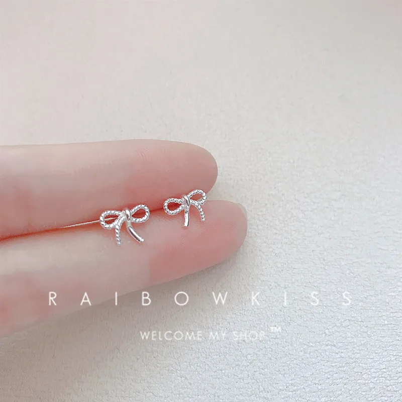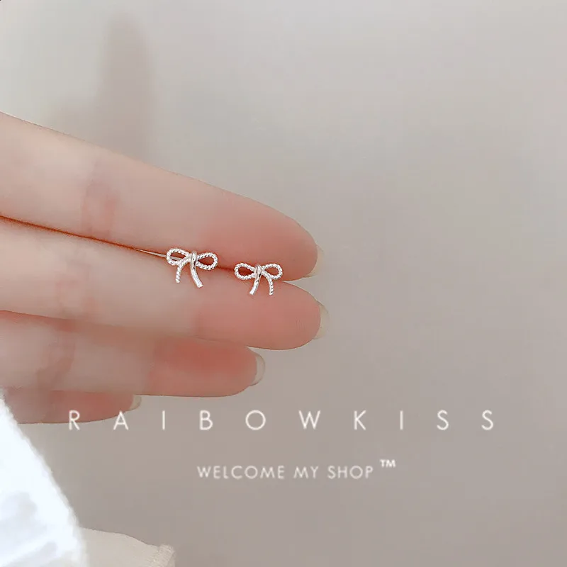 Женские серьги-гвоздики с бантом, новые трендовые маленькие изысканные ушные гвоздики из пеньковой веревки, милые романтичные украшения для девушек