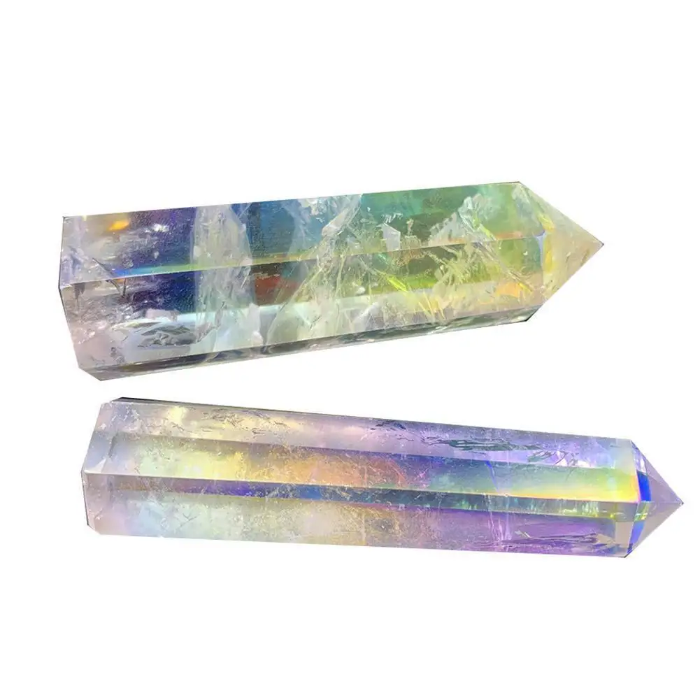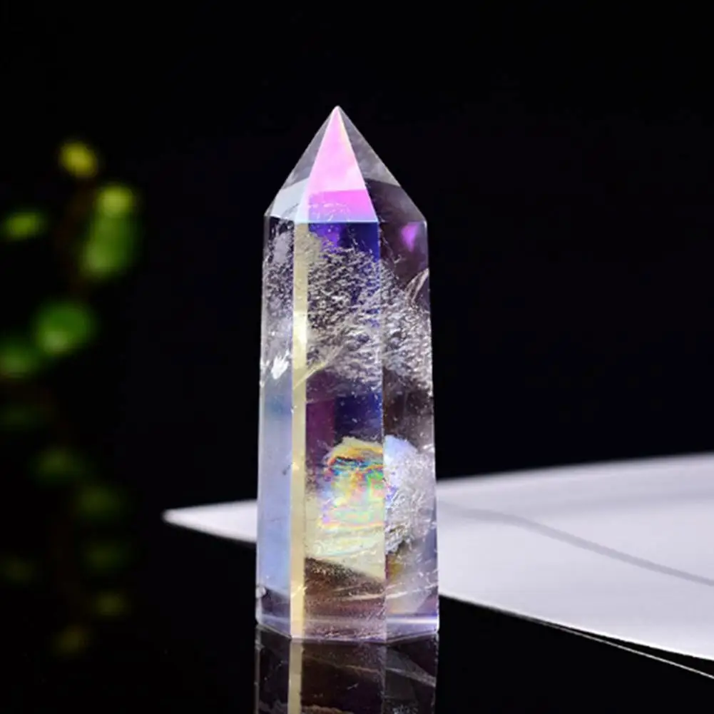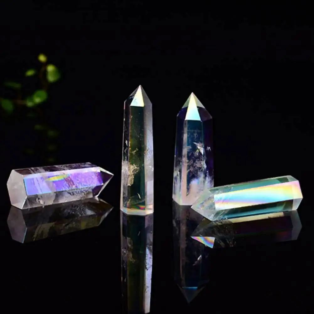 1 шт. натуральный прозрачный кварцевый кристалл Aura, лечебный камень, энергетический кварцевый домашний декор рейки, полированный камень, башня чакры