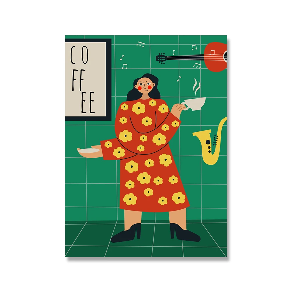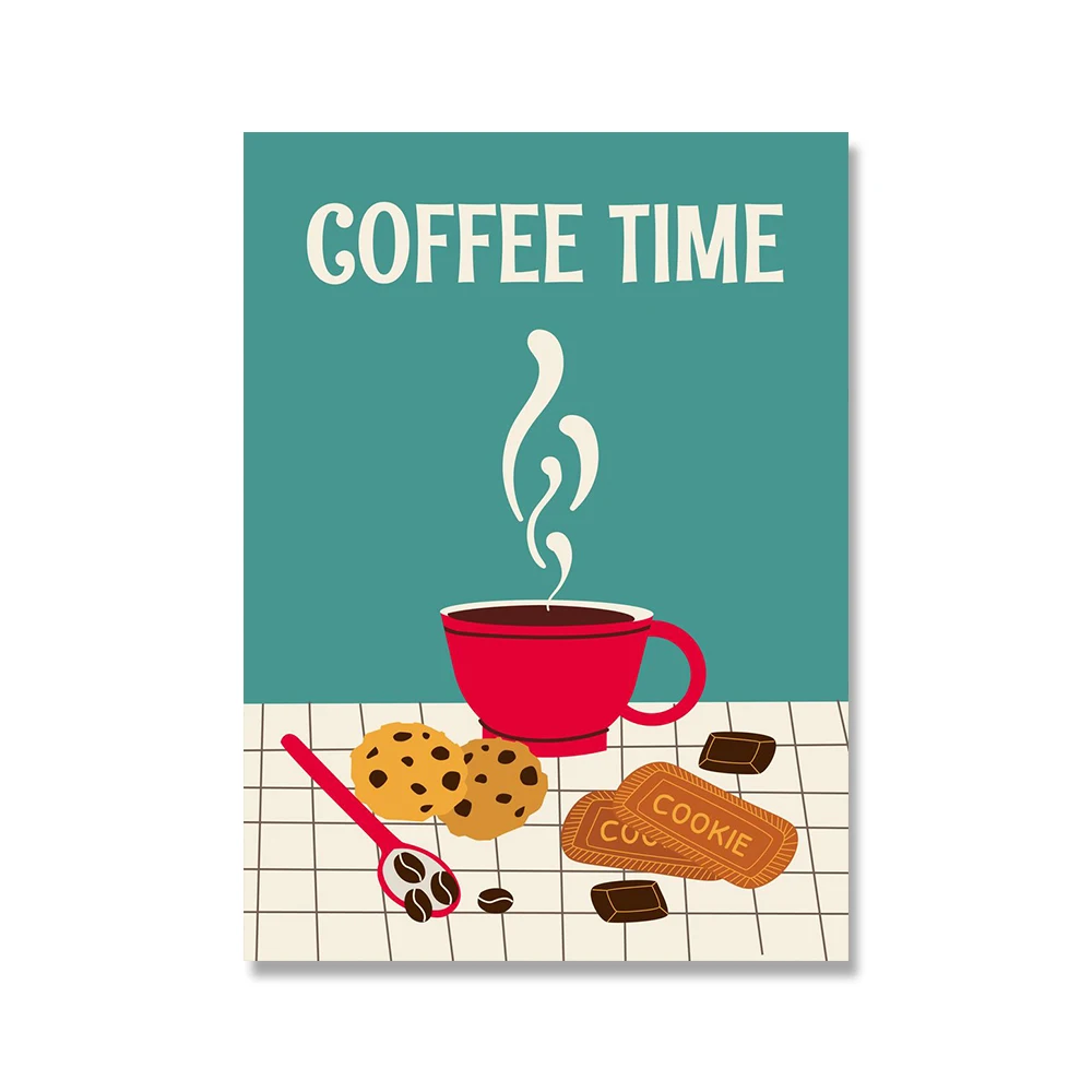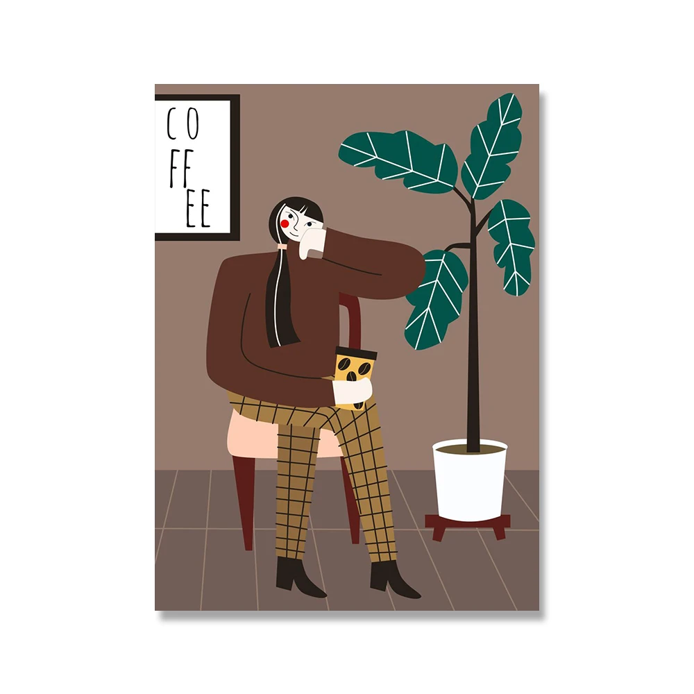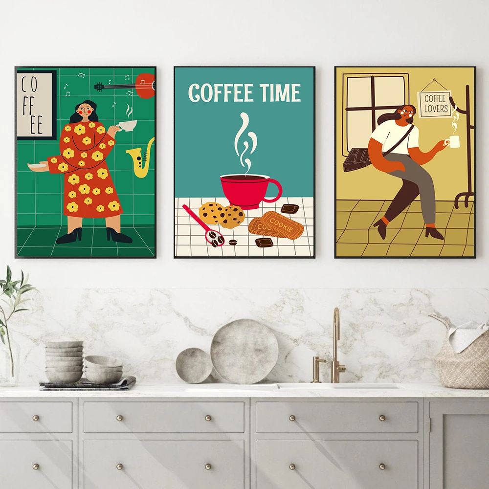 Скандинавский постер для девушки, расслабьтесь с кофе, Мультяшные картины на холсте со временем кофе, декоративные картины для кухни и комнаты
