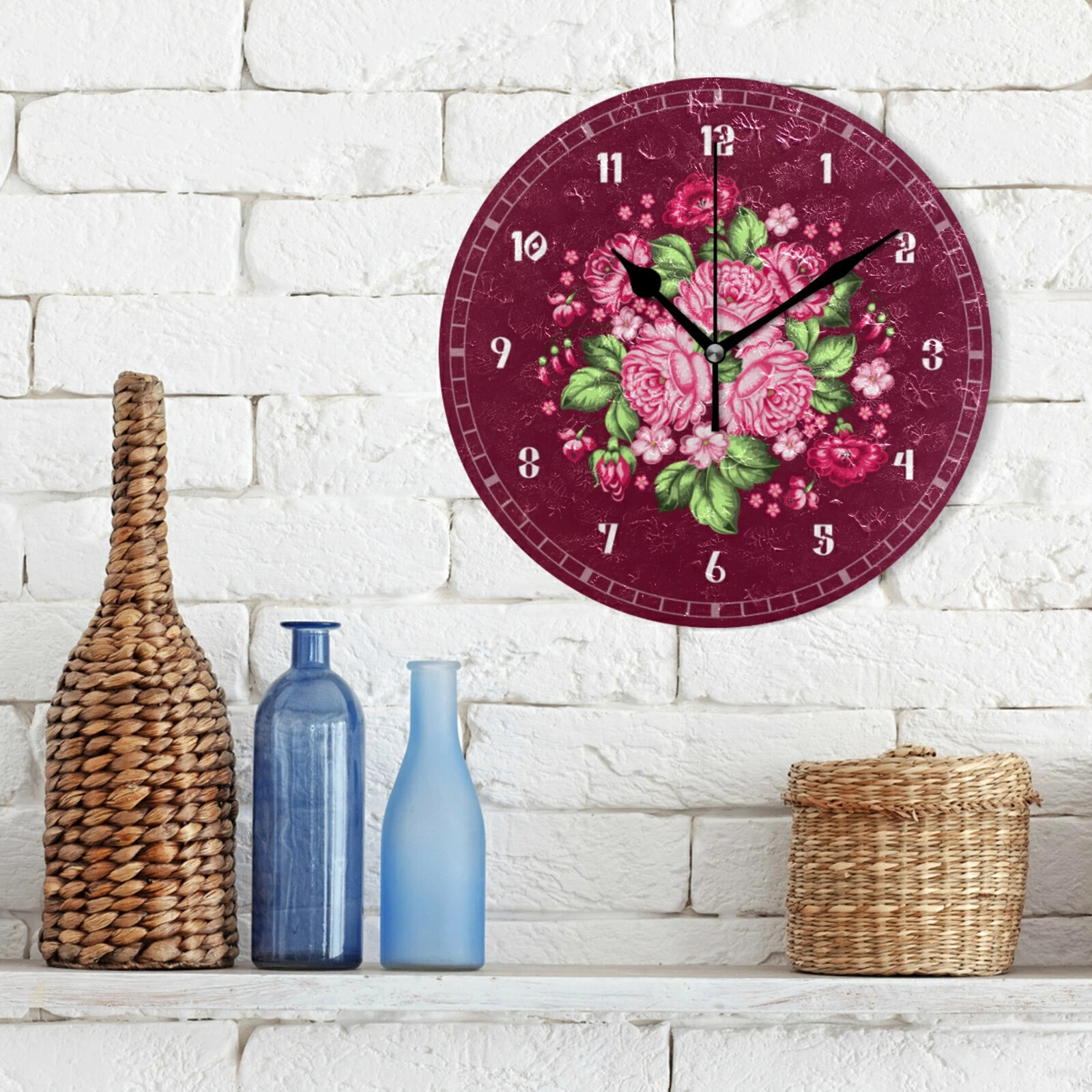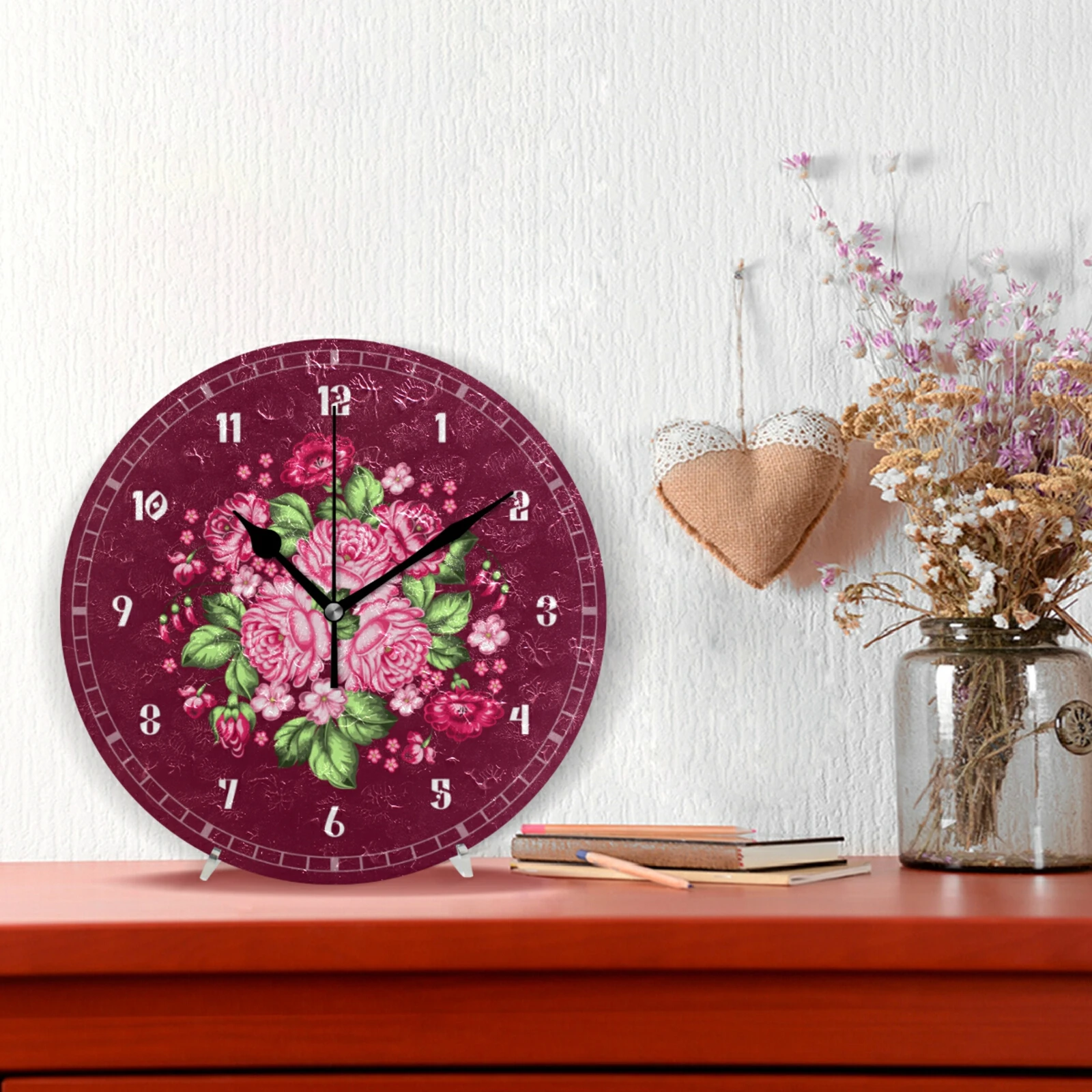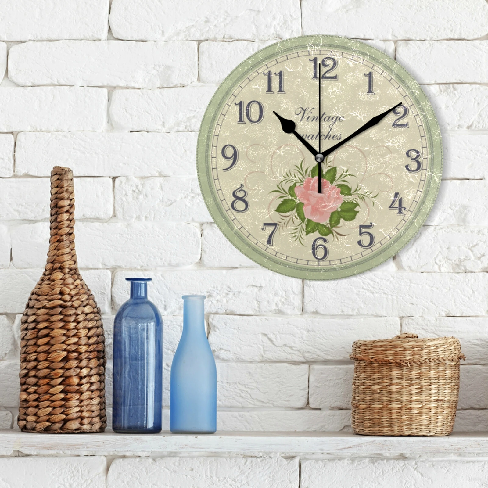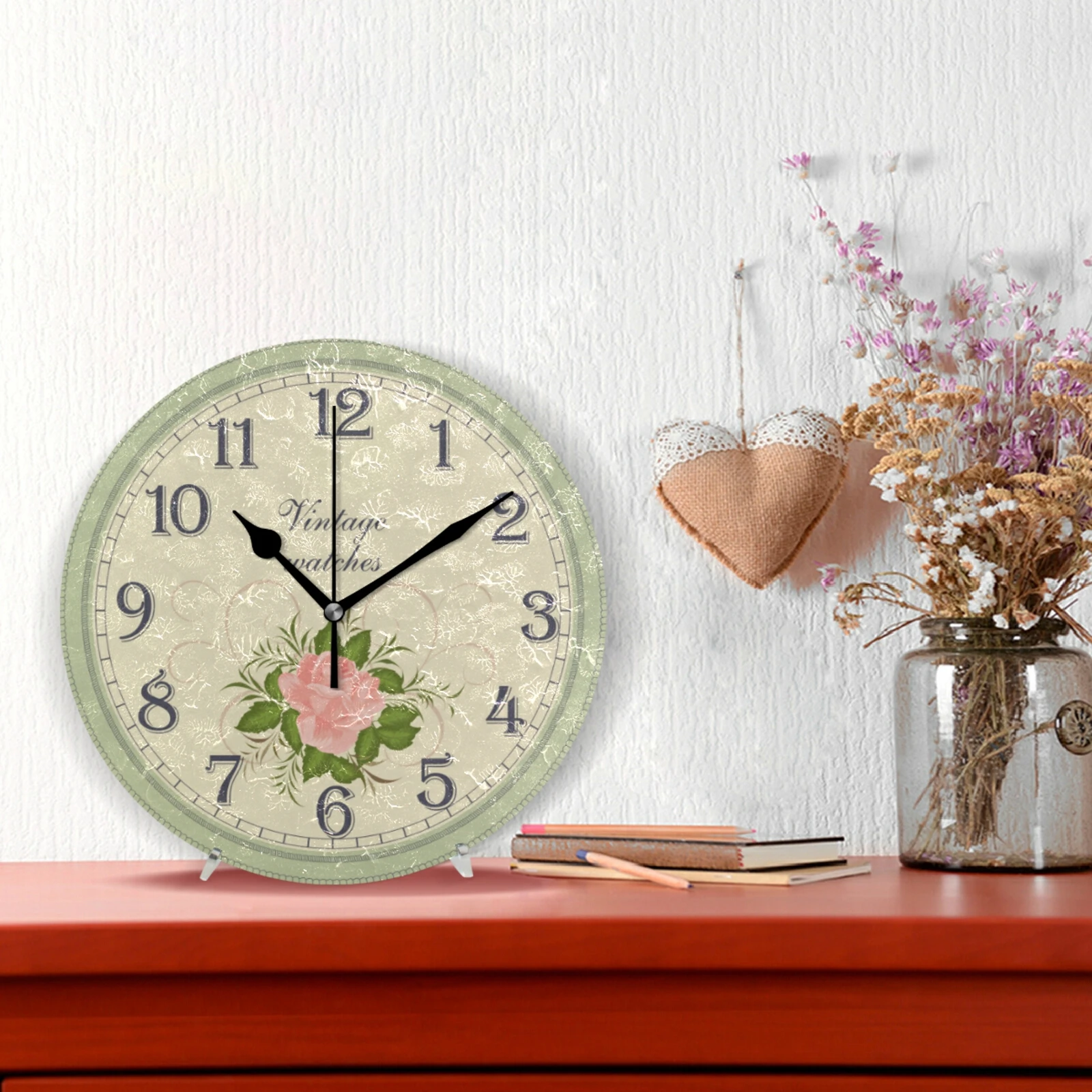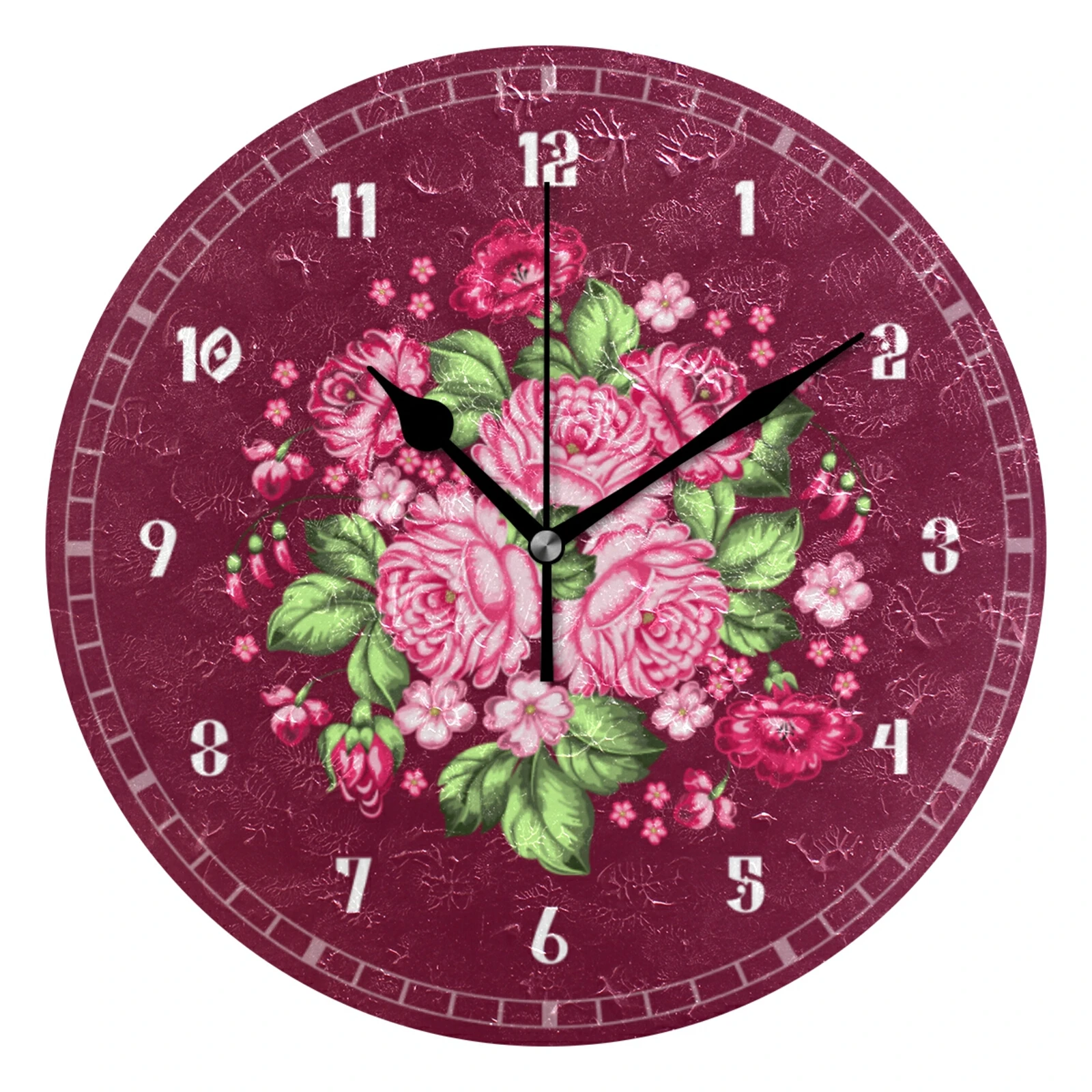 Антикварные круглые Настенные часы с принтом роз, тихие настенные часы, тихие настольные часы для гостиной, спальни, современный декор