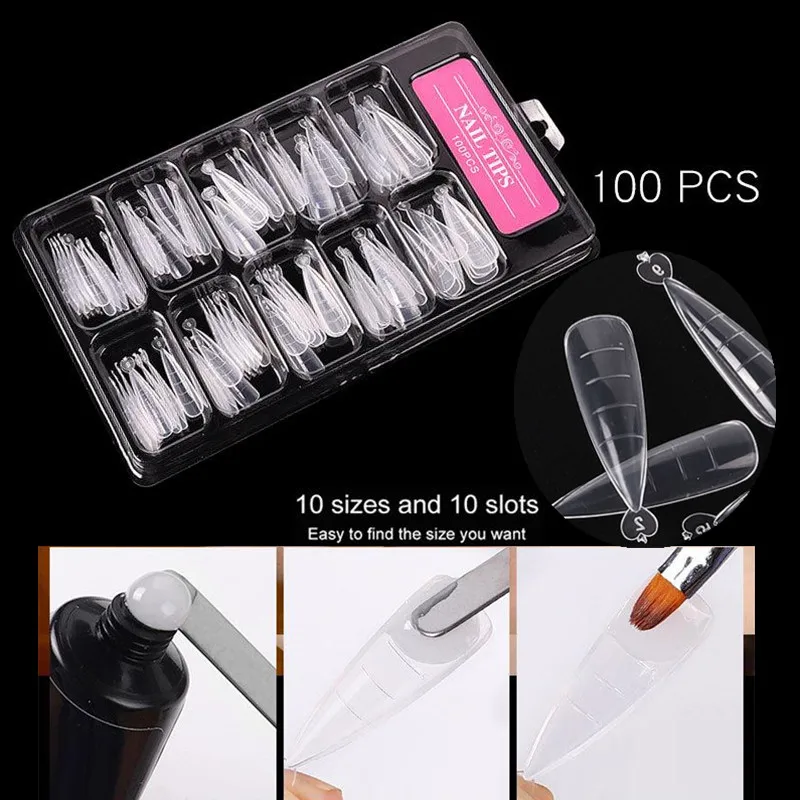 Набор накладных ногтей для быстрого наращивания, формы для наращивания ногтей с полным покрытием, инструменты для маникюра, 100 шт.