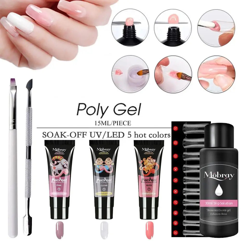 15 шт./компл. набор полигелевых гель для ногтей профессиональное наращивание ногтей быстрое усиление лака для ногтей кисть пилка инструменты для маникюра