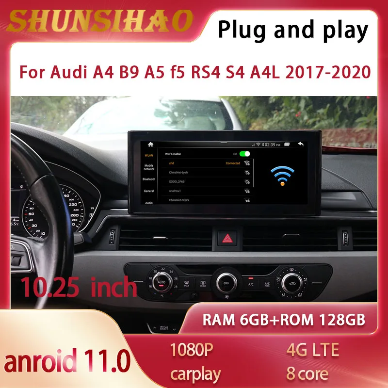 Продукт подходит для:Audi A4 B9 A5 f5 RS4 S4 A4L 2017-20201. Поддержка операционной системы: Система Android 11,0.2. Поддержка 6 ГБ оперативной памяти.(4 Гб)3. Поддержка 128 ГБ ROM.(64 Гб ROM).4. Поддержка 8 ядер ЦП.5. Поддержка оригинального автомобильного интерфейса и интерфейса Android.6. Наш кабель подключен и работает, нет необходимости резать оригинальный автомобильный кабель.7. Поддержка 4G слота для sim-карты.8. Встроенный "carplay". Можно подключить телефоны iphone и Android.Характеристика:1. Поддержка 10,25 дюймового сенсорного экрана.2. Поддержка Bluetooth музыки и Bluetooth телефона.3. Встроенная GPS навигационная система.4. Поддержка функции двойной зоны.5. Поддержка воспроизведения видео 1080P.6. Поддерживает высококачественный музыкальный выход.7. Встроенный WIFI приемник.8. Поддержка управления рулевым колесом.9. Поддержка usb-входа.10. Поддержка отображения даты и времени.11. Поддержка play store.12. Поддержка управления папками.13. Поддержка графического интерфейса пользователя.14. Поддержка установки приложений.15. Встроенный микрофон или поддержка внешнего микрофона.16. Поддержка функции календаря.17. Поддержка оригинального автомобильного усилителя.18. Поддержка функции обратной камеры (опционально).19. Поддержка DAB + digital radio.(опционально).20. Поддержка системы контроля давления в шинах (TPMS).(опционально).
