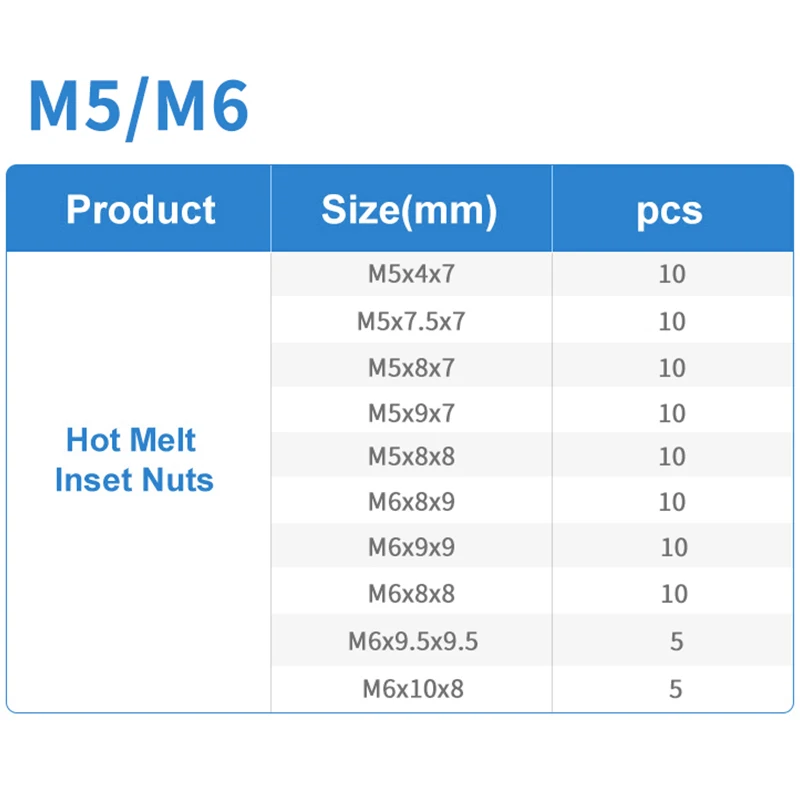M5 m6 набор вставок из горячей бронзы, 90 шт., Резьбовая вставка, наполнитель, медные гайки, нагревательные вставки, впрыскивающая гайка