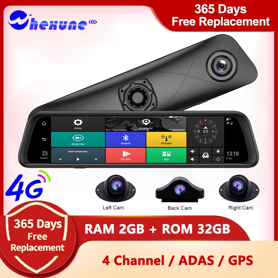 Зеркало заднего вида Videcam, Автомобильный видеорегистратор 4G, 4 канала, 12 дюймов, GPS навигация, ADAS Wi-Fi