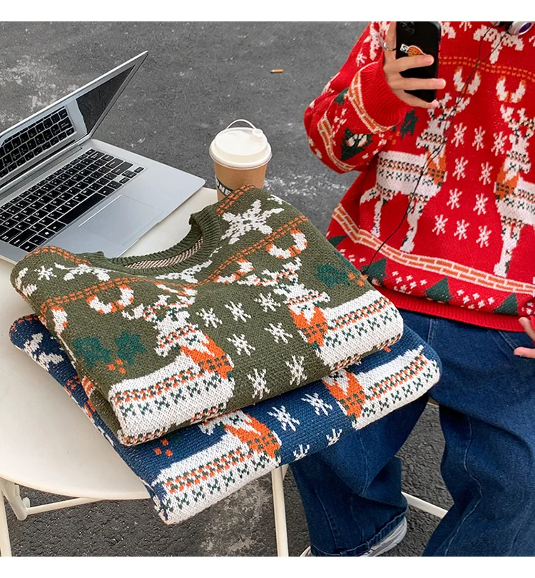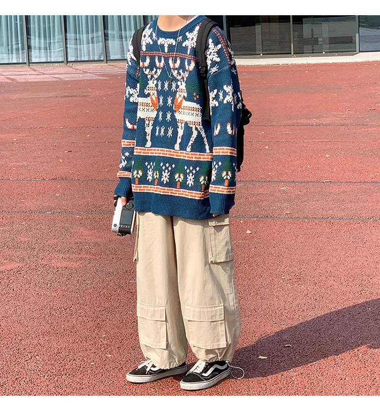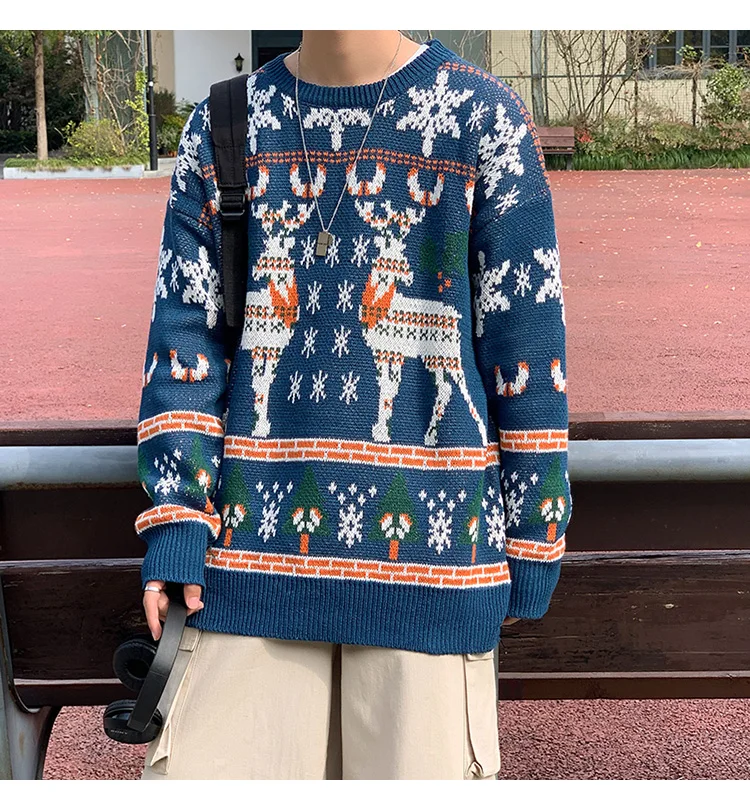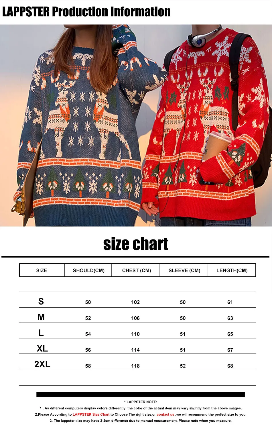Мужской вязаный свитер LAPPSTER в стиле харадзюку со снежинками, 2022, мужские зимние пуловеры оверсайз с рождественским оленем, мужские корейские модные свитера