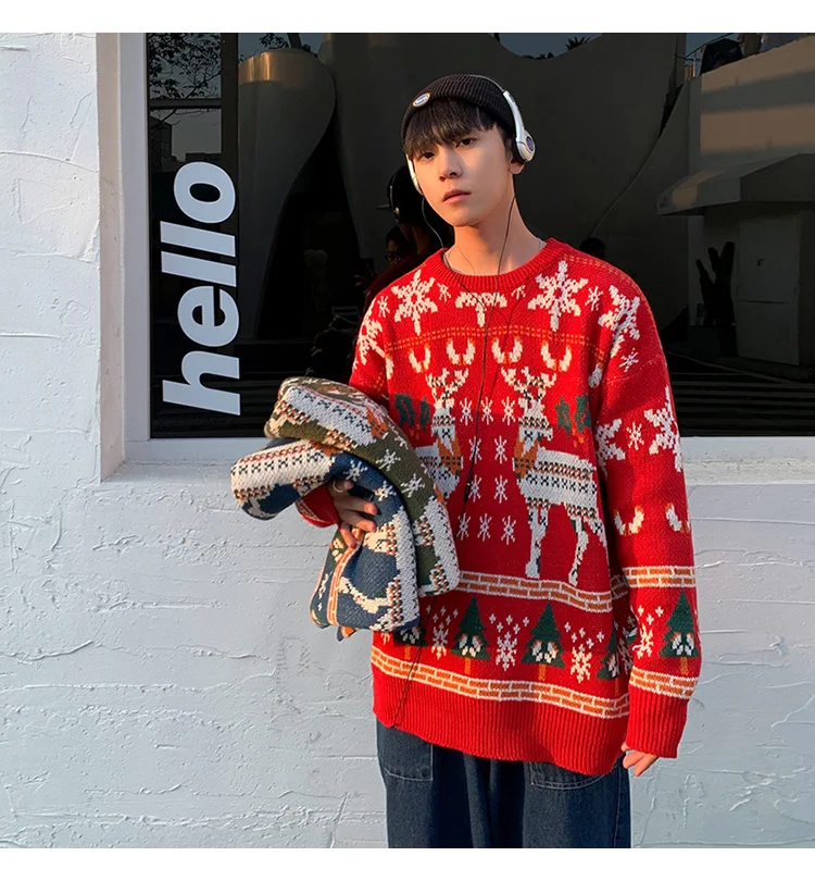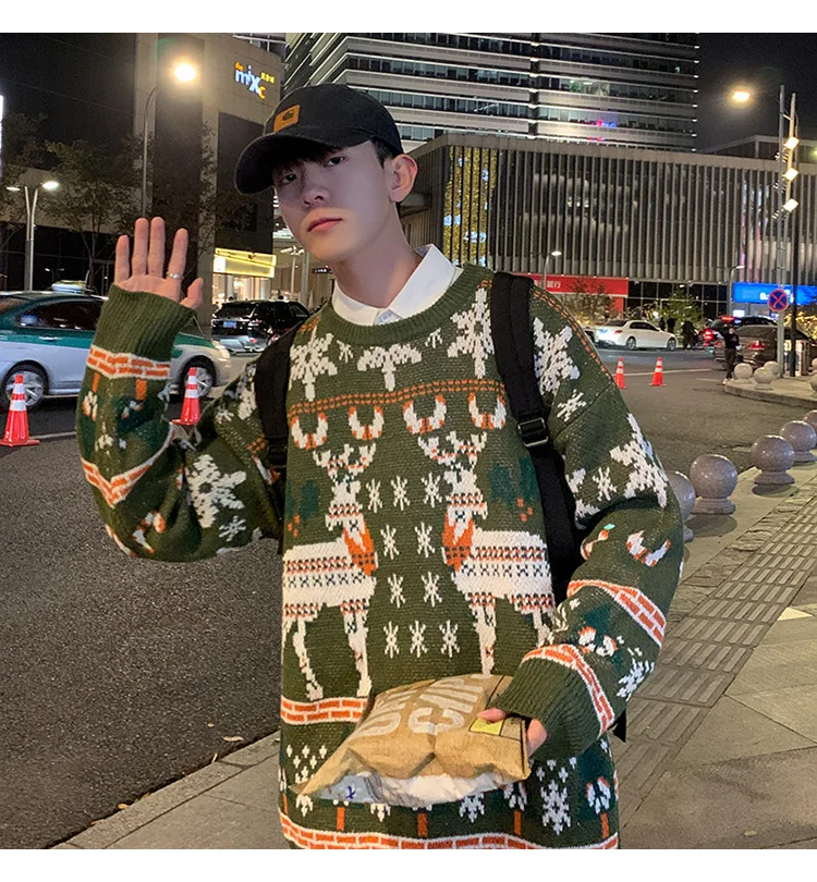 Пуловер мужской вязаный, оверсайз, модные свитера, осень, 2021