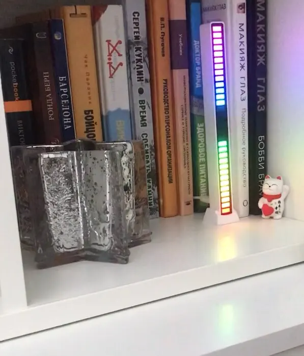 Классная игрушка, полностью стоит своих денег. Очень много режимов и настроек по цвету, удобное управление с телефона. Микрофон хотелось бы более чувствительный, в настройках выставил максимальную чувствительность если музыка играет тихо или далеко от источника звука может плохо улавливать звук и подсветка не попадает в такт. Аккумулятора хватает на пару часов. Корпус пластик хотя выглядит как алюминий :)