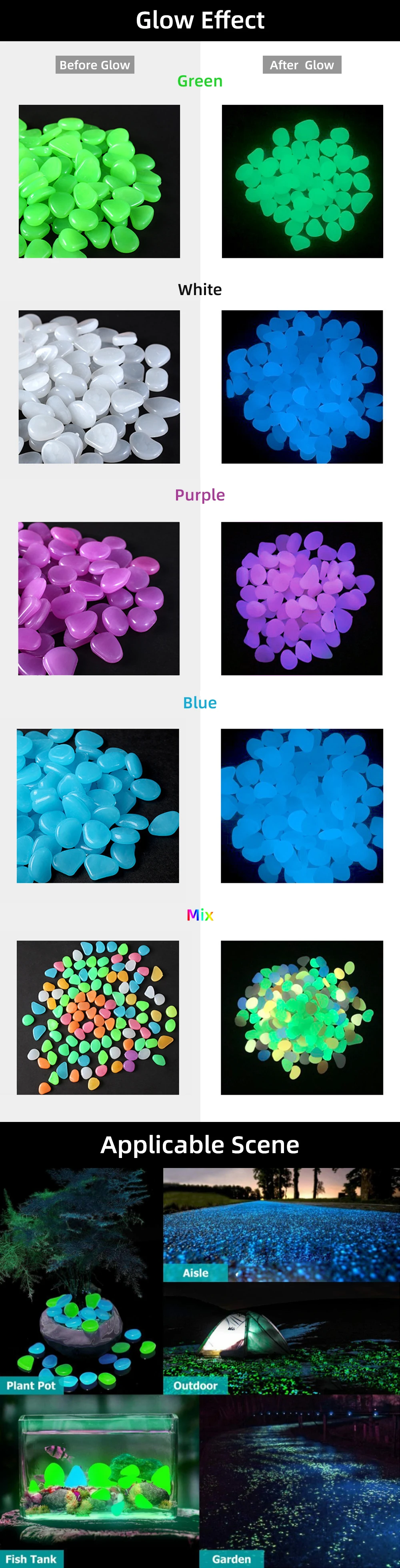 Эти камни не могут светиться сами по себе. Но эти гальки поглощают достаточное количество солнечного света в течение дня, чтобы светиться до 2-3 часов ночью или в любой другой темной среде. Пожалуйста, снова Излучайте светильник, если он недостаточно яркий.