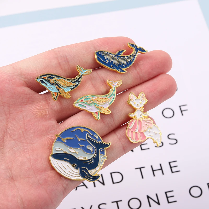 Эмалированная булавка в форме Кита, броши в форме горба мечты, Кита, кошки, русалки, аниме, искусство, металлические значки, булавки для сумки, одежды, ювелирные изделия, подарки