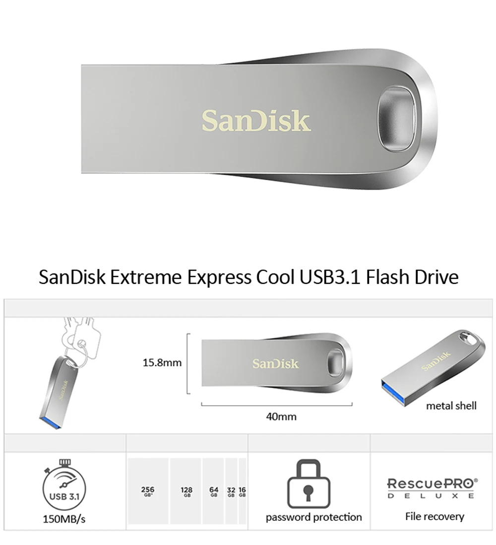 Объедините необходимость в удобном способе хранения и перемещения данных с Вашим желанием защитного, элегантного устройства. С быстрой скорости передачи данных до 150 МБ/с., цельнометаллическая ультра-роскошная вспышка USB 3,1 Gen может передавать полнометражный фильм менее чем за 30 секунд, чтобы вы могли тратить меньше времени на ожидание и больше времени на выполнение. И до 512GB6 пространства, его прочный литой металлический дизайн держит все ваше важное содержание в красивой форме. Ультратонкий флеш-накопитель SanDisk SecureAccess®Защита паролем программного обеспечения собран в поставляется в комплекте с ограниченная гарантия на 5 лет для дополнительного спокойствия.