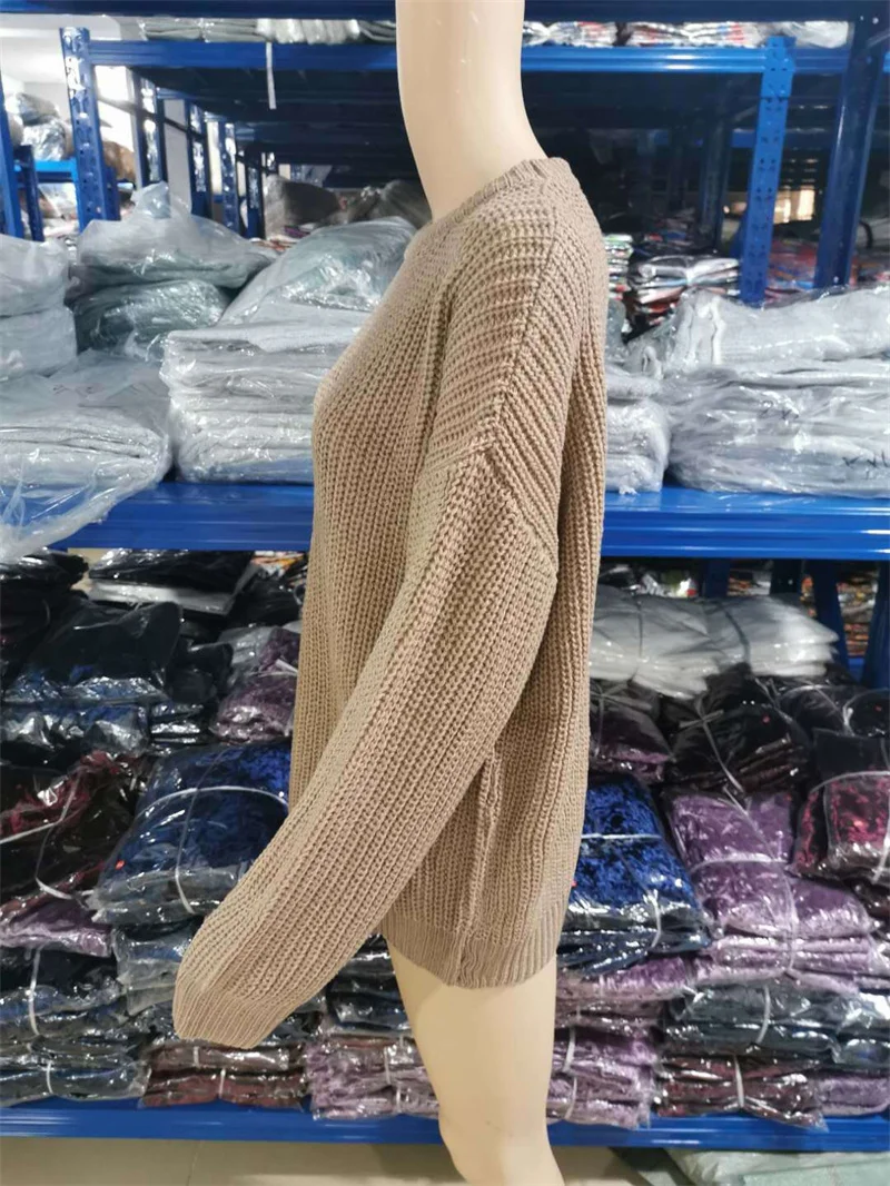 Женский вязаный свитер с длинным рукавом, круглым вырезом