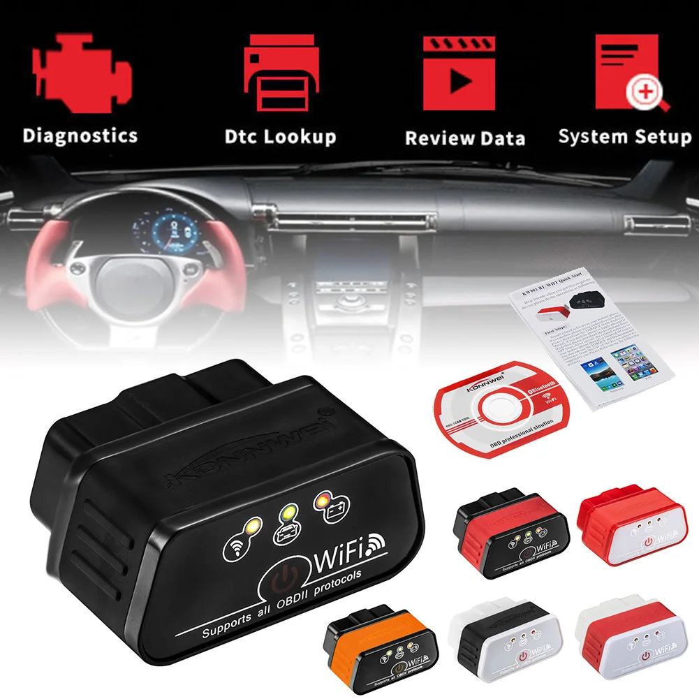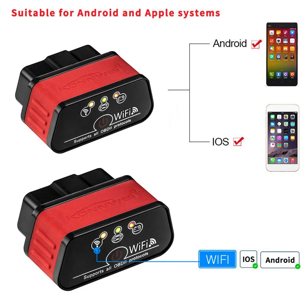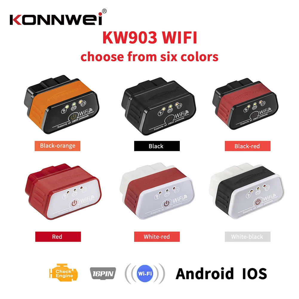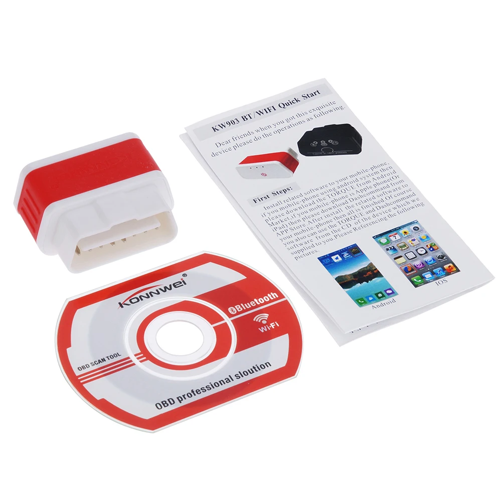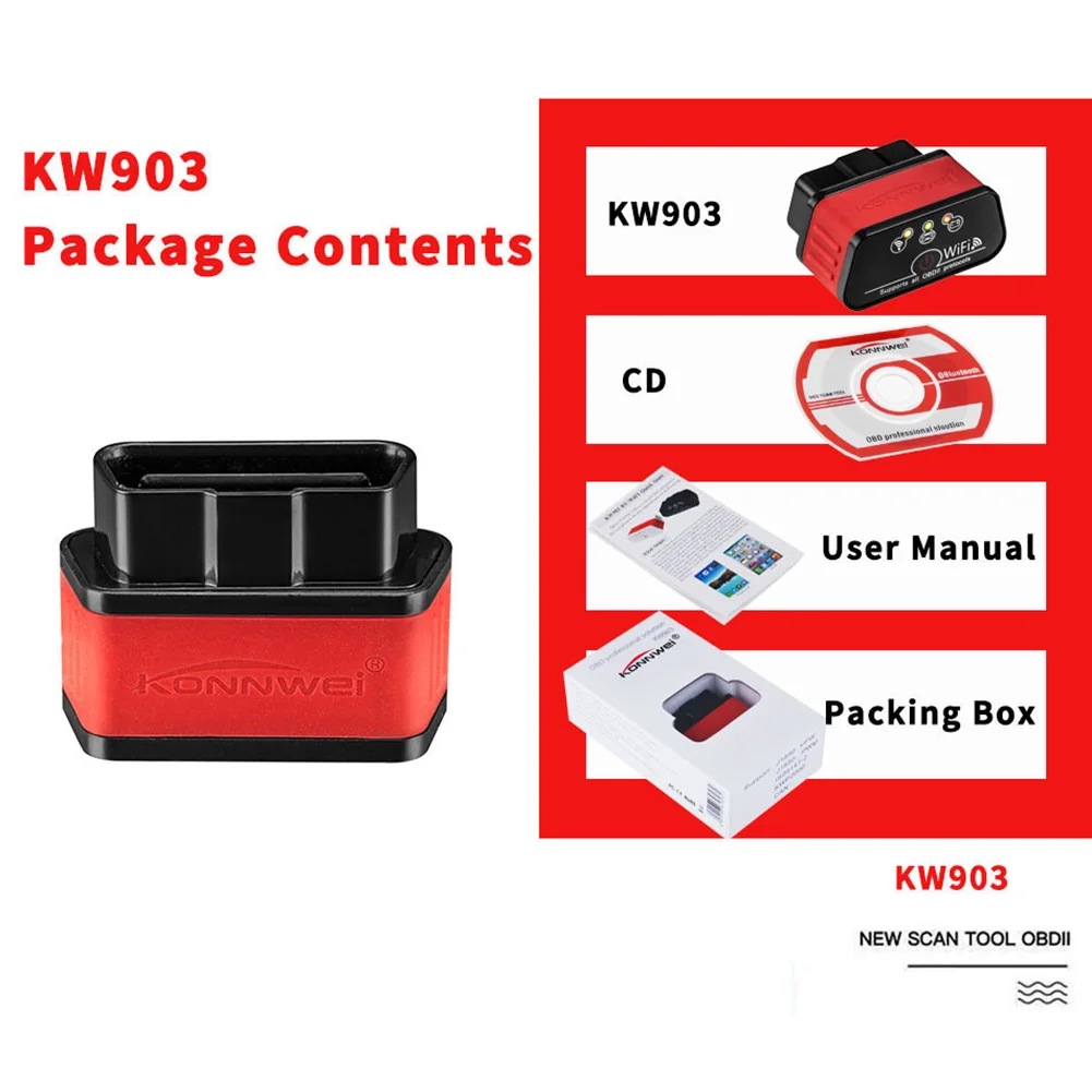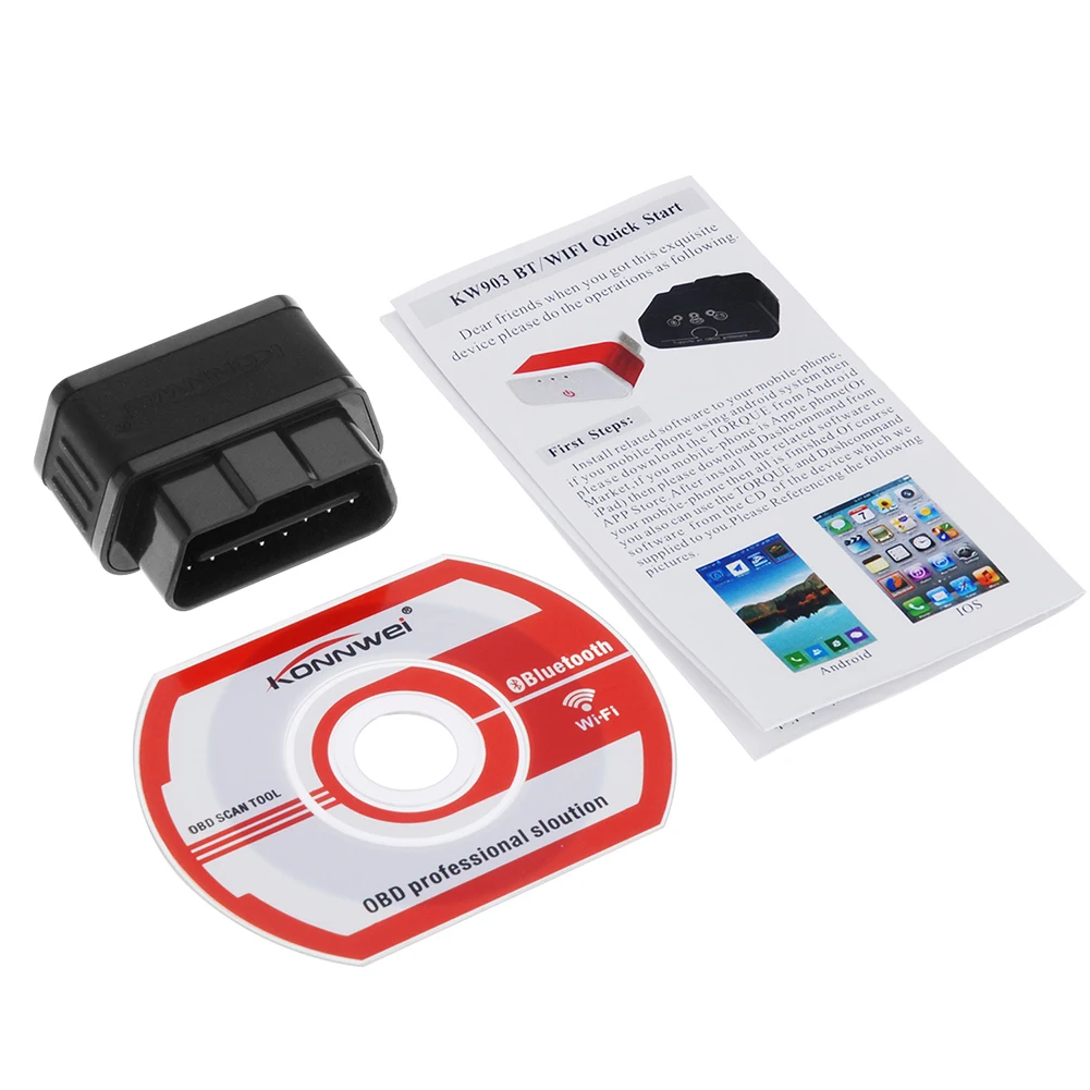 KONNWEI KW903 беспроводной Bluetooth OBD2 сканер 12 В диагностический считыватель кодов для Android и iOS