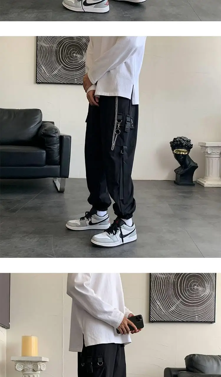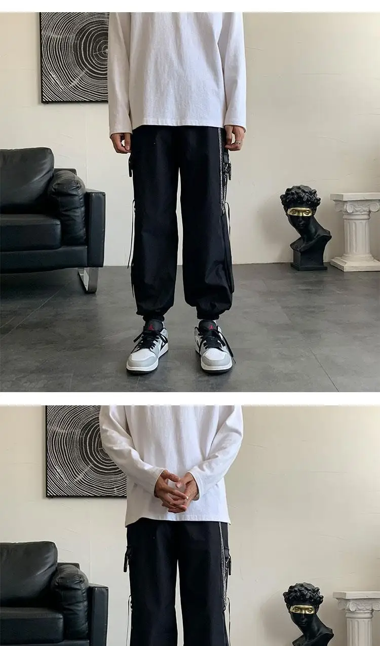 Джоггеры-шаровары с лентами, мужские брюки-карго, уличная одежда 20...