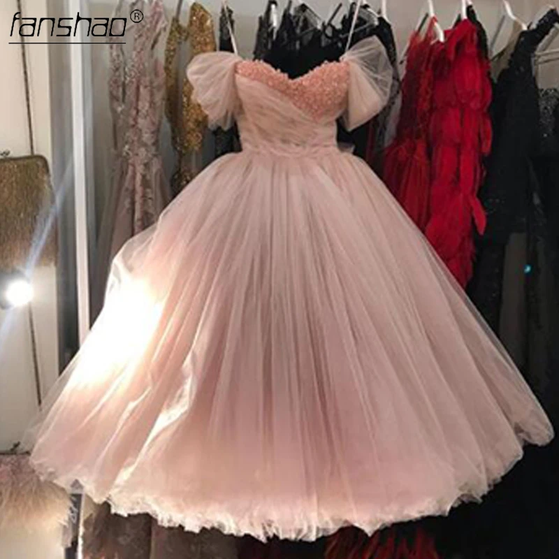 Изысканные розовые вечерние платья с открытыми плечами и бусинами, ...