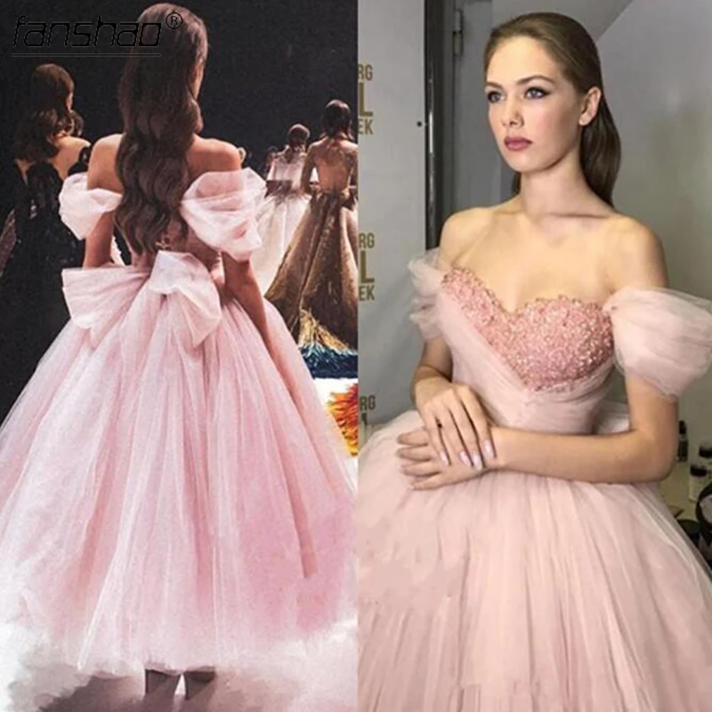 Женское платье с блестками Fanshao, розовое платье с аппликацией, открытыми плечами и бантом, пышвечерние чное платье для девушек 15 лет