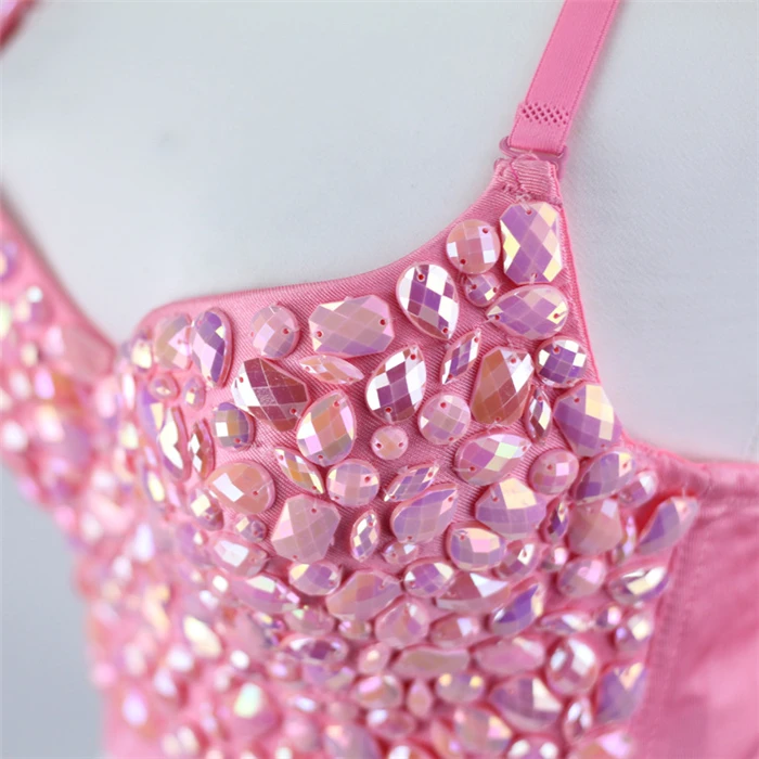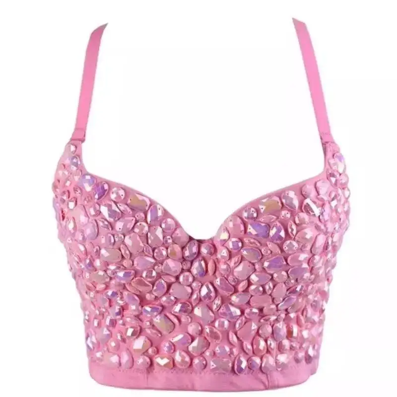 Женский бюстгальтер с розовыми бусинами, летний бюстье с эффектом пуш-ап и бриллиантами, бюстгальтер без косточек для ночного клуба и вечеринки, укороченный топ, майки, 2021