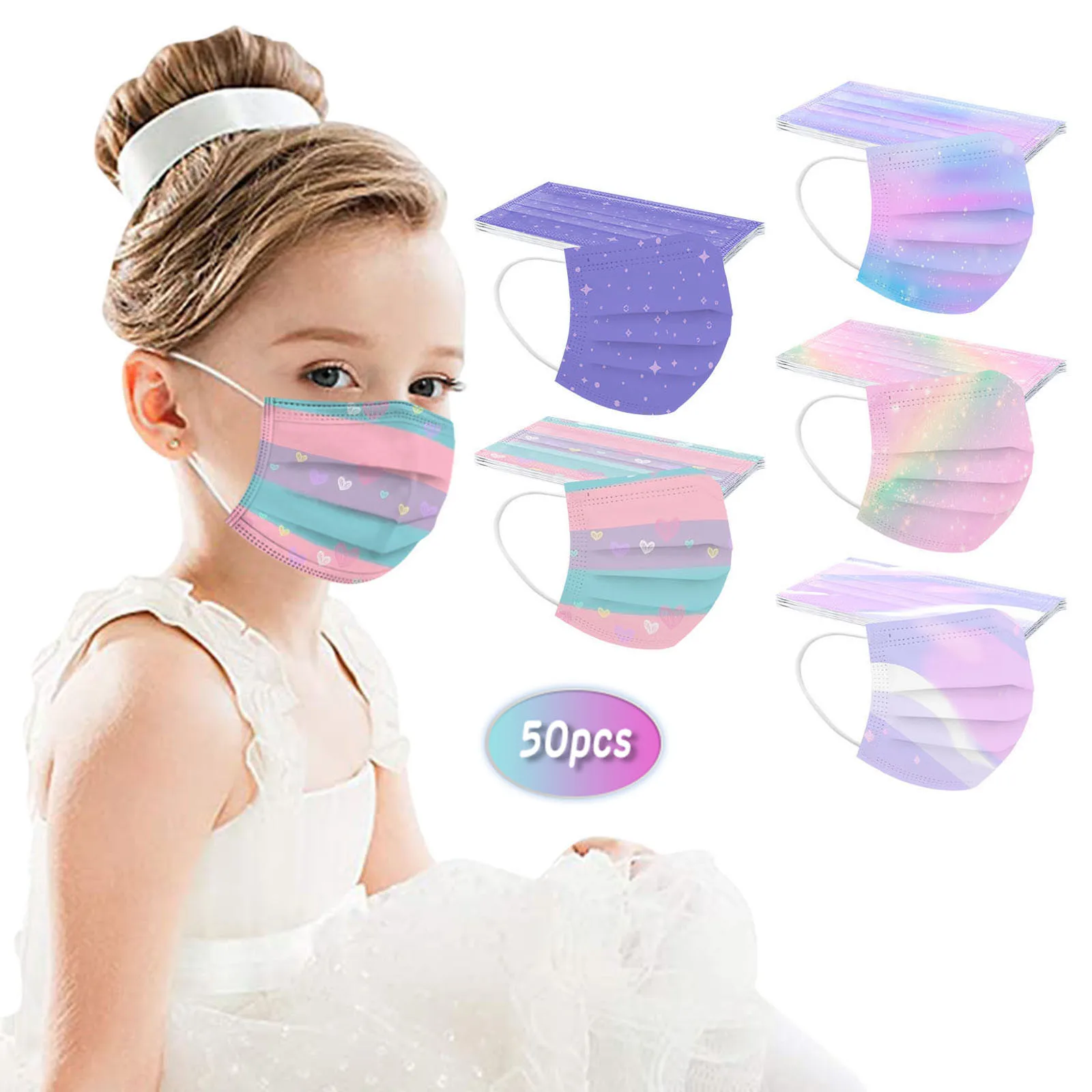 50 шт., детские одноразовые маски для лица с принтом звездного неба
