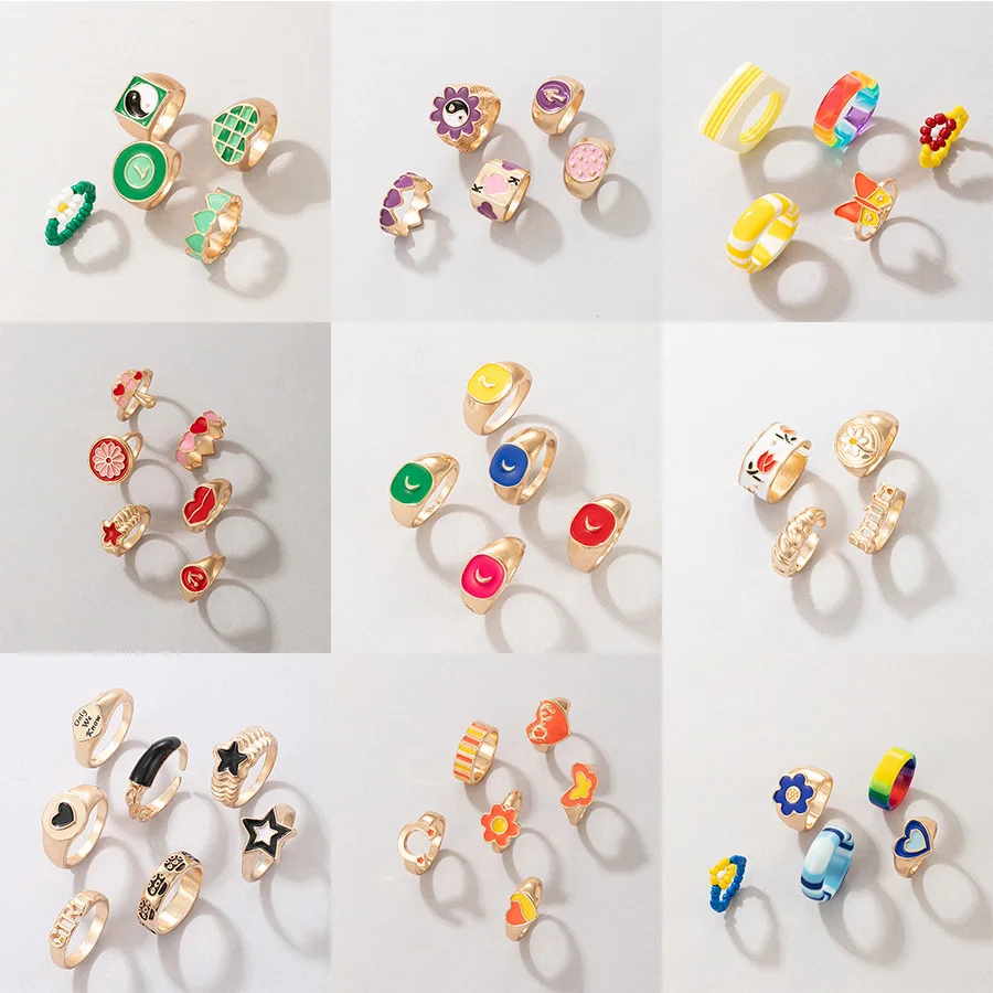 Красочные винтажные корейские кольца Y2k ювелирные изделия для дево...