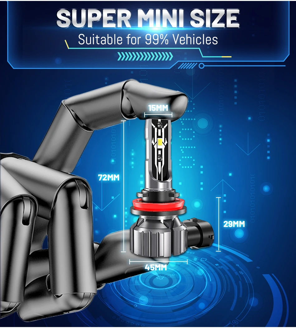 Фары головного света H11 H4 H7 9006 9005 H8 HB3 HB4 6000K, светодиодные противотуманные фары без вентилятора, мини-размер, Автомобильные светодиодные фары головного света, автомобильные аксессуары