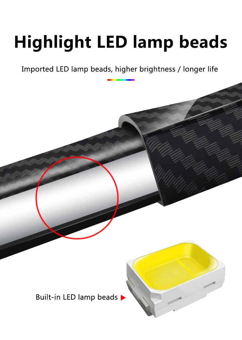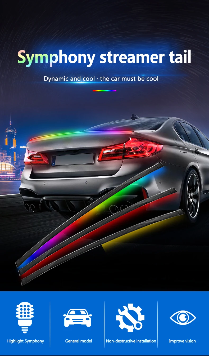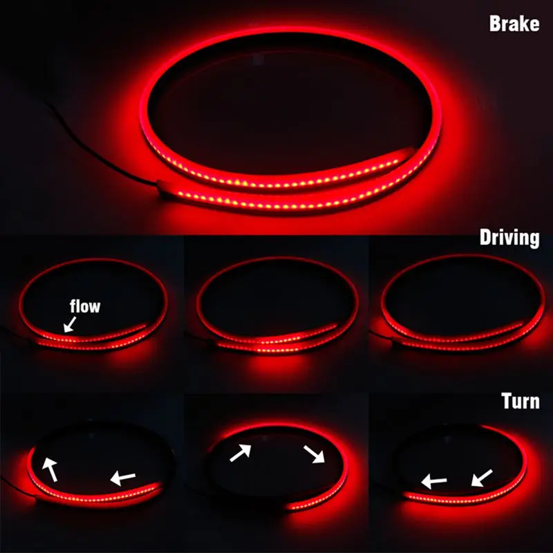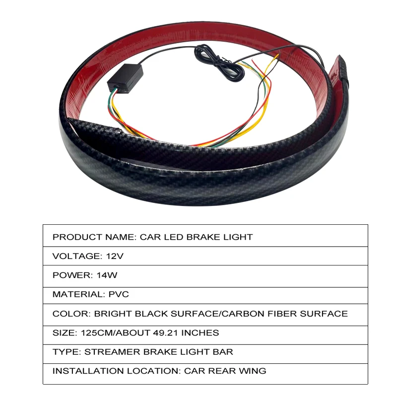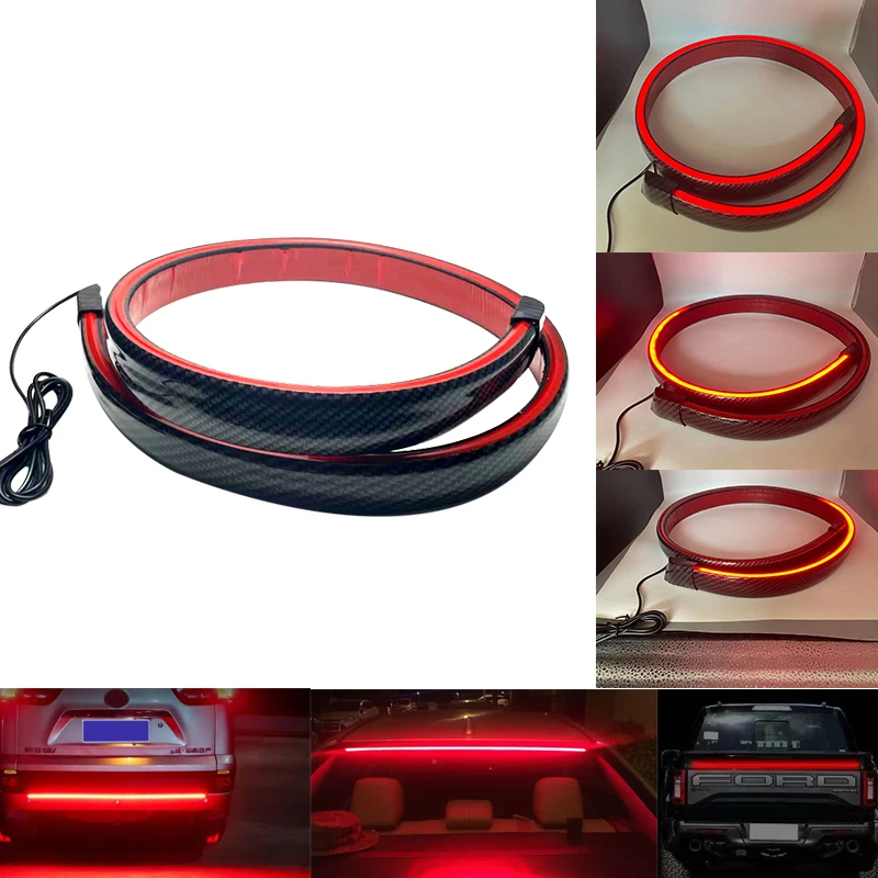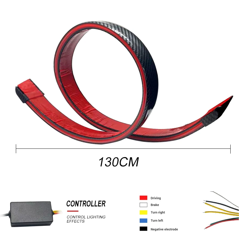 Автомобильные светодиодсветодиодный стоп-сигналы для багажника, гибкие поворотники, водонепроницаемые полосы, углеродное волокно, 130 см, универсальные стоп-сигналы, Автомобильные светодиодные спойлеры