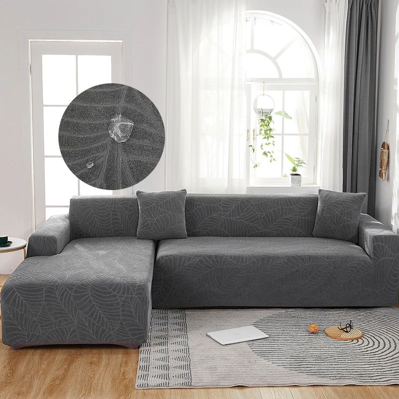 Чехол для дивана, жаккардовый, однотонный, эластичный, L-образный