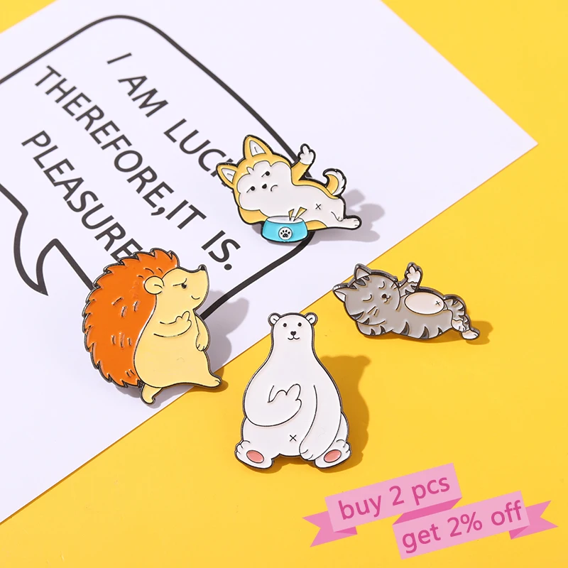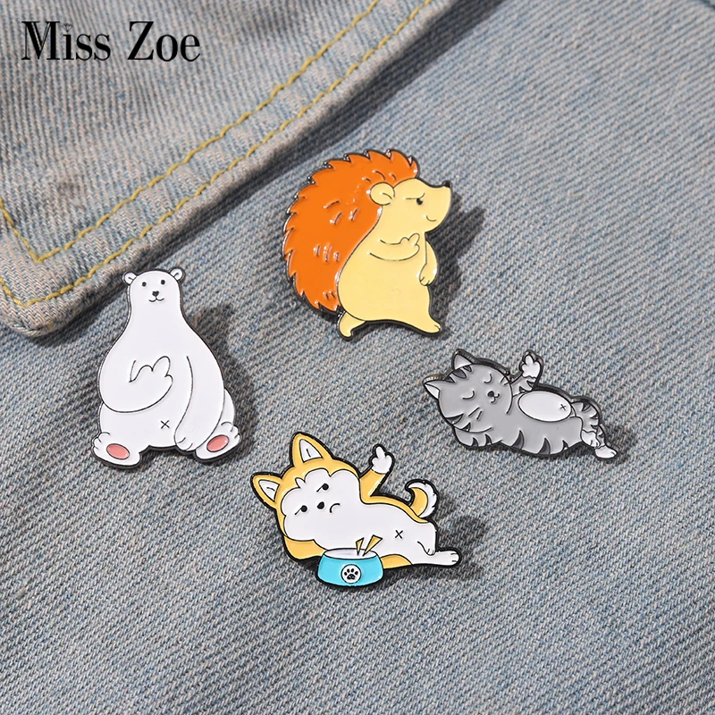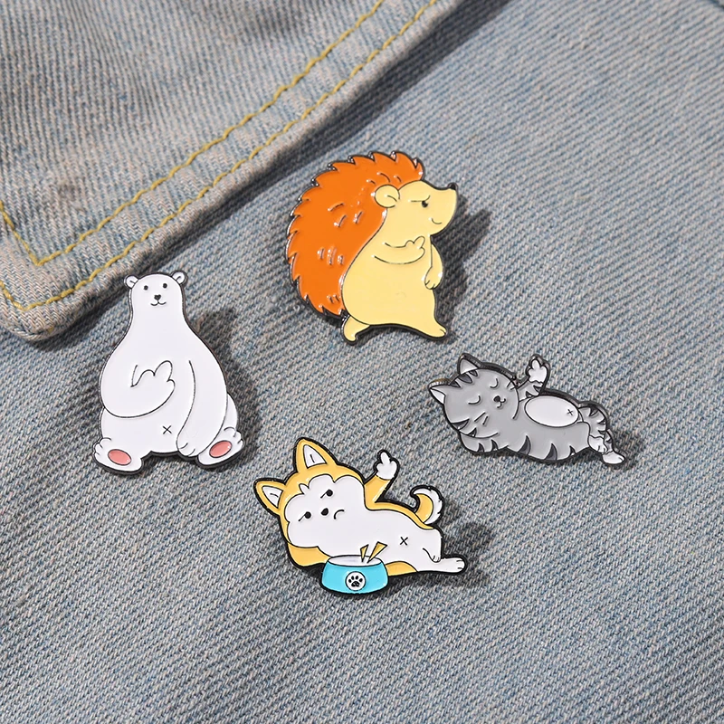 Эмалированная булавка среднего пальца в виде животного, забавные броши в виде собаки, кота, ежика, белого медведя, металлические значки, булавки для сумки, одежды, подарочные украшения