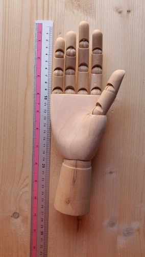 (Комментарий дублирован при покупке правой и левой руки). Рука имеет хорошую отделку. Цвет, который вы видите на фотографиях продавца, практически совпадает с цветом товара. Задняя часть руки и запястья гладкие и полированные. Несмотря на то, что размер не имеет чрезмерного веса, можно ожидать, что он будет весить больше, потому что он сделан из дерева. Он имеет большую деталь на ногтях и имеет хорошую мобильность на верхних четырех пальцах. Браслет, найденный, прилипает к ладони, стоит немного больше, чтобы повернуть его, но это что-то понятное и с некоторой силой вы можете двигаться без проблем. Основание руки, конец запястья, отделано мягким клеем на ощупь, которое предотвращает скольжение поверхности, где вы его размещаете. Я снял его на мгновение, чтобы проверить интерьер, и все идеально. Очень доволен продуктом и отличным соотношением цена/качество.