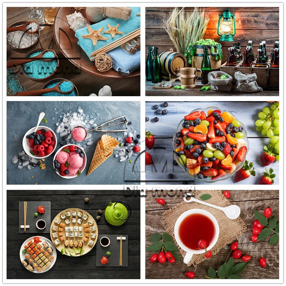 Алмазная картина "сделай сам", суши, еда, декор для кухни, алмазная вышивка, овощи, специи, Набор для вышивки крестиком, мозаика, домашний декор