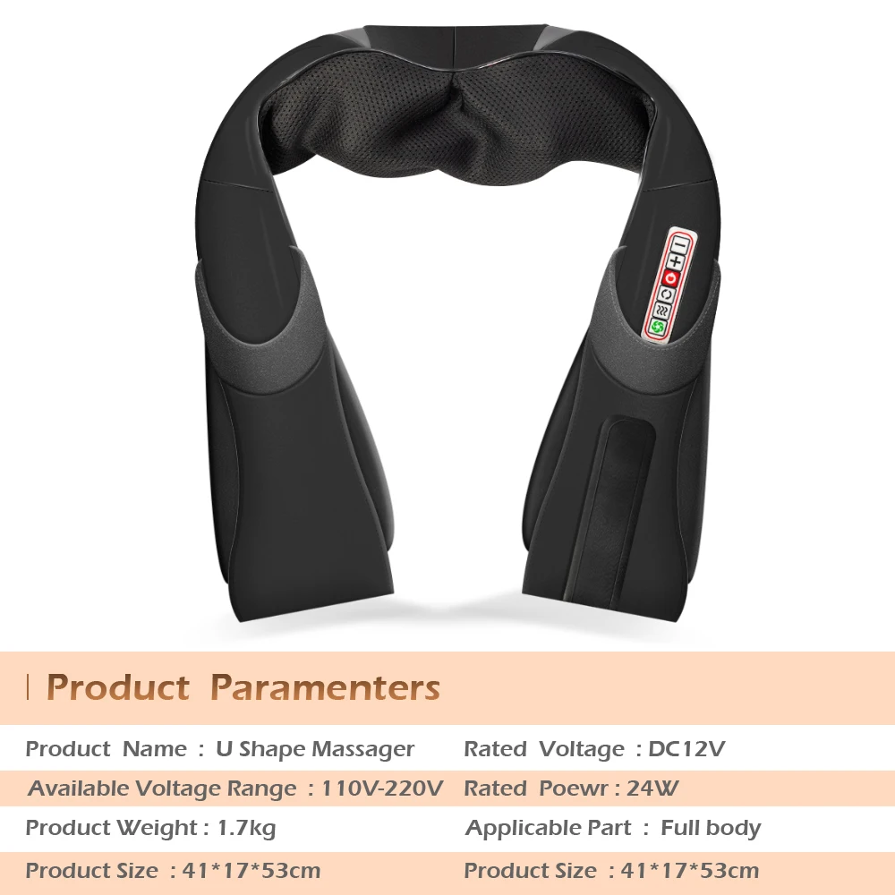 Массажер-шаль 4D на липучке с 6 кнопками, U-образный Электрический Инфракрасный Массажер шиацу для расслабления тела, шеи, спины, плеч, дома и автомобиля